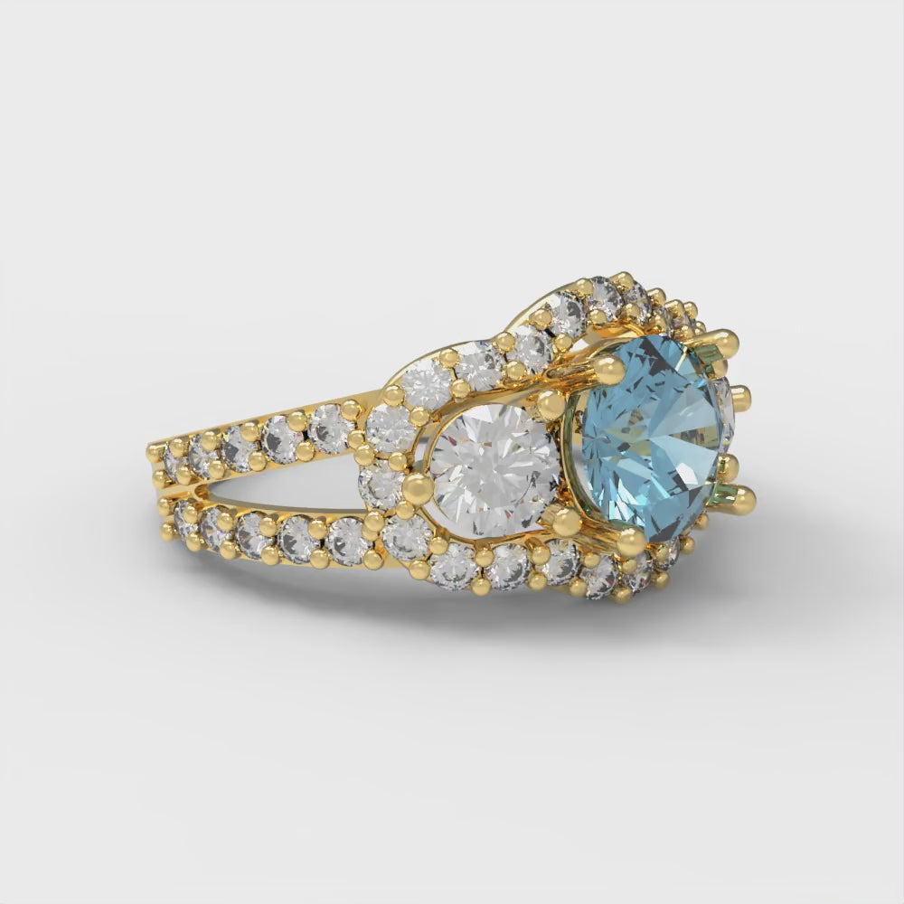 2.16 cttw Zirconia Simulated Blue Diamond Three-Stone Engagement Ring - Solid Gold (VVS1, Round Cut,6.5mm)