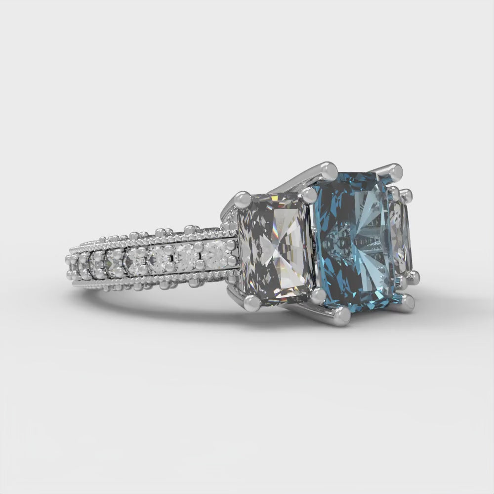 3.61 cttw Zirconia Simulated Blue Diamond Three-Stone Engagement Ring - Solid Gold (VVS1, Emerald Cut,8x6mm)