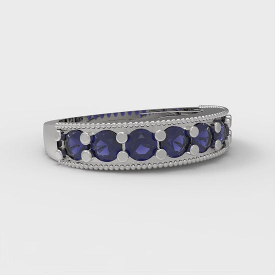 0.81 cttw Simulated Blue Sapphire Round Cut White Gold Eternity Wedding Band