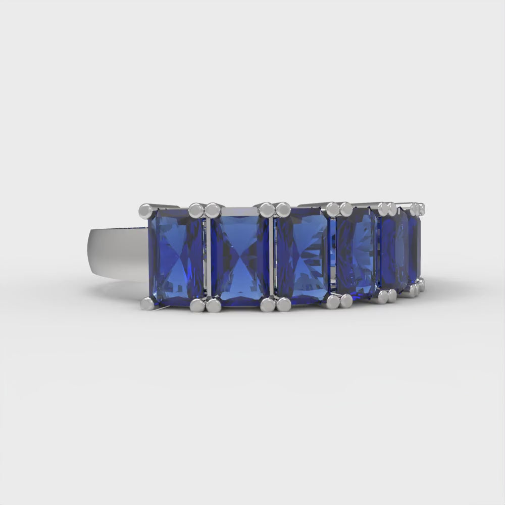 2.61 cttw Simulated Blue Sapphire Emerald Cut White Gold Eternity Wedding Band