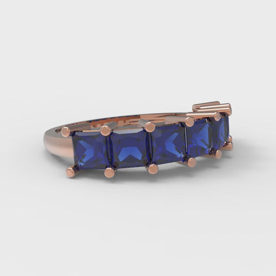 1.75 cttw Simulated Blue Sapphire Princess Cut Rose Gold Eternity Wedding Band