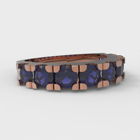 1.53 cttw Simulated Blue Sapphire Round Cut Rose Gold Eternity Wedding Band