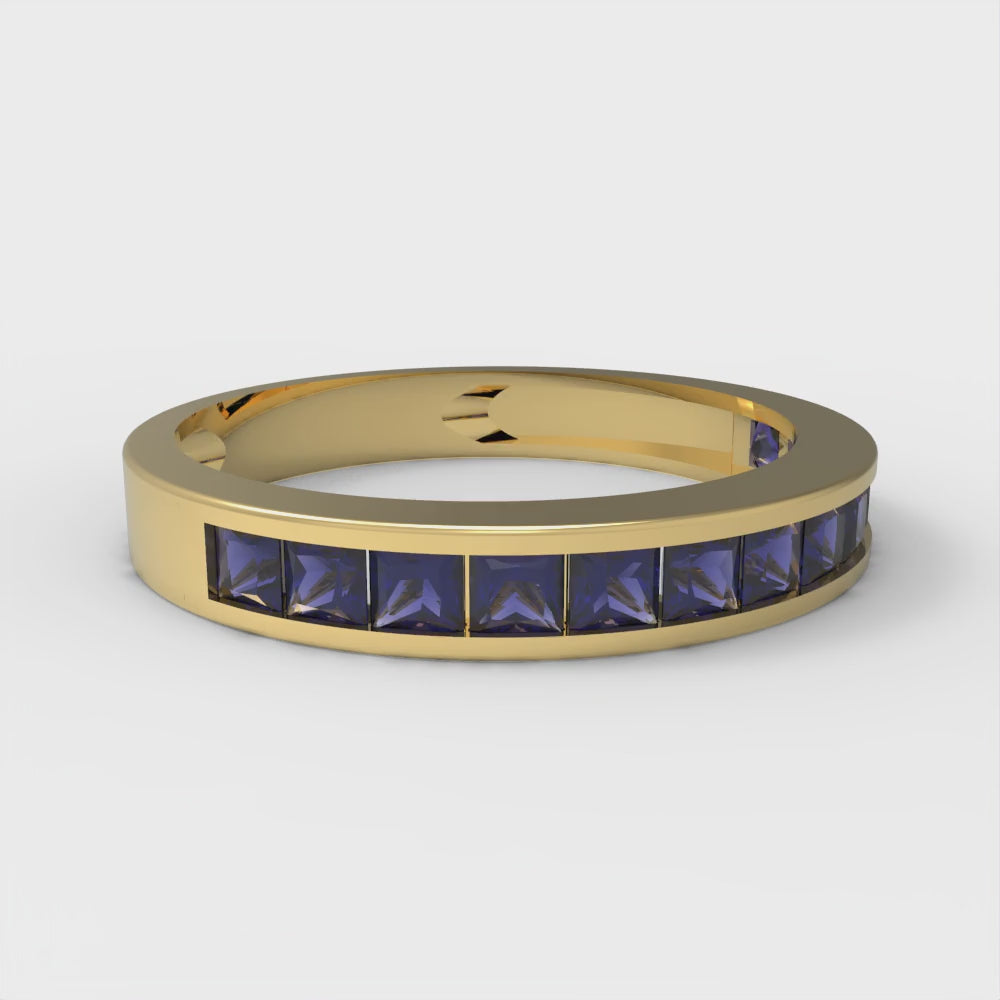 0.78 cttw Simulated Blue Sapphire Princess Cut Yellow Gold Eternity Wedding Band