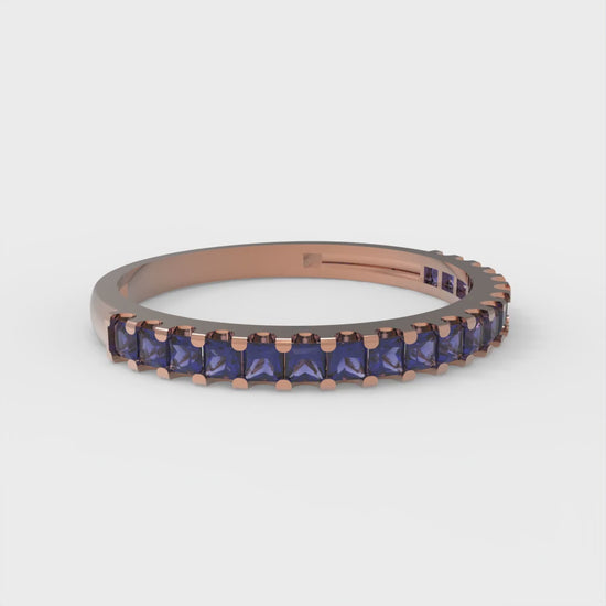 0.285 cttw Simulated Blue Sapphire Princess Cut Rose Gold Eternity Wedding Band