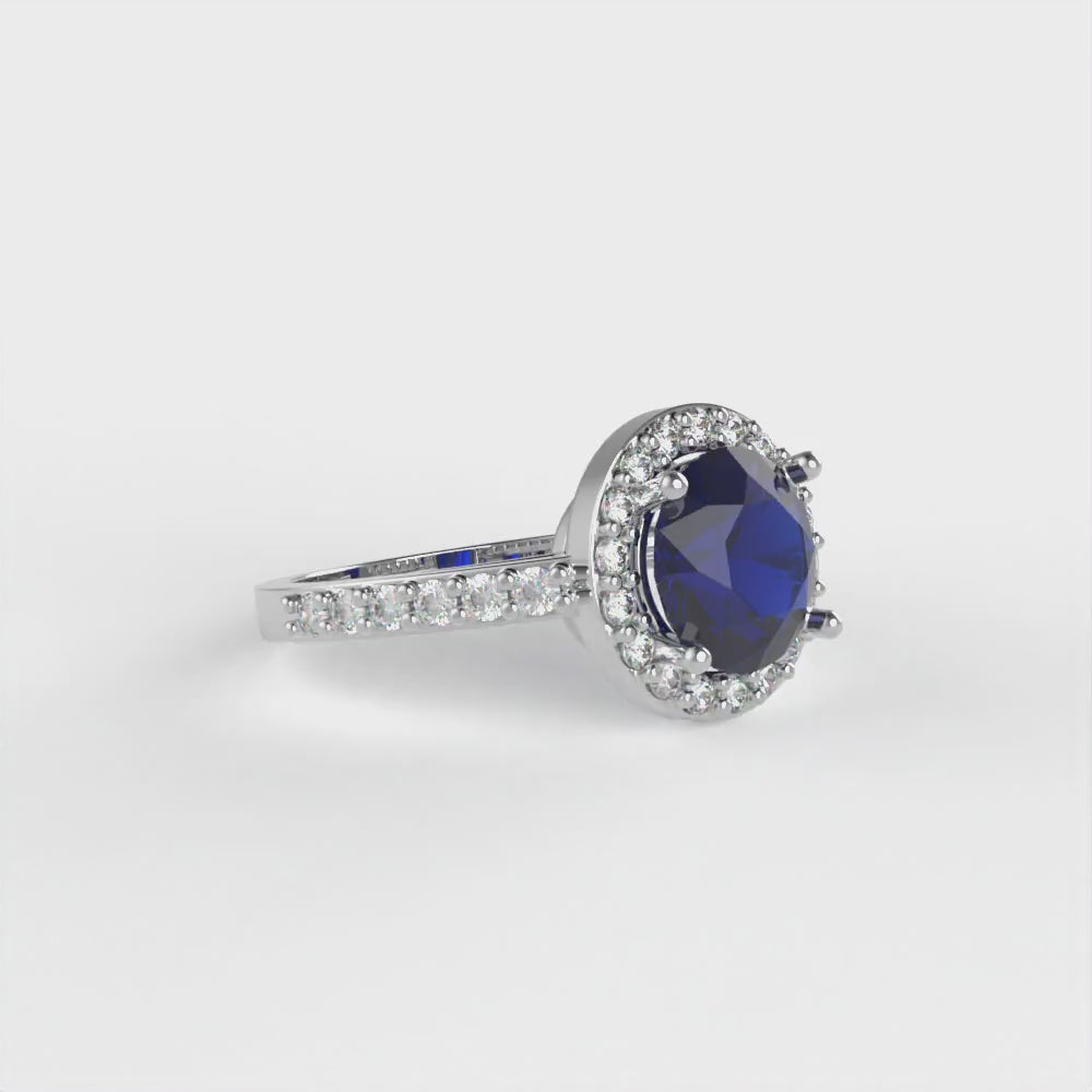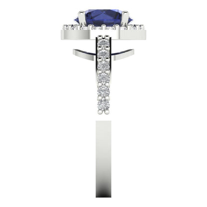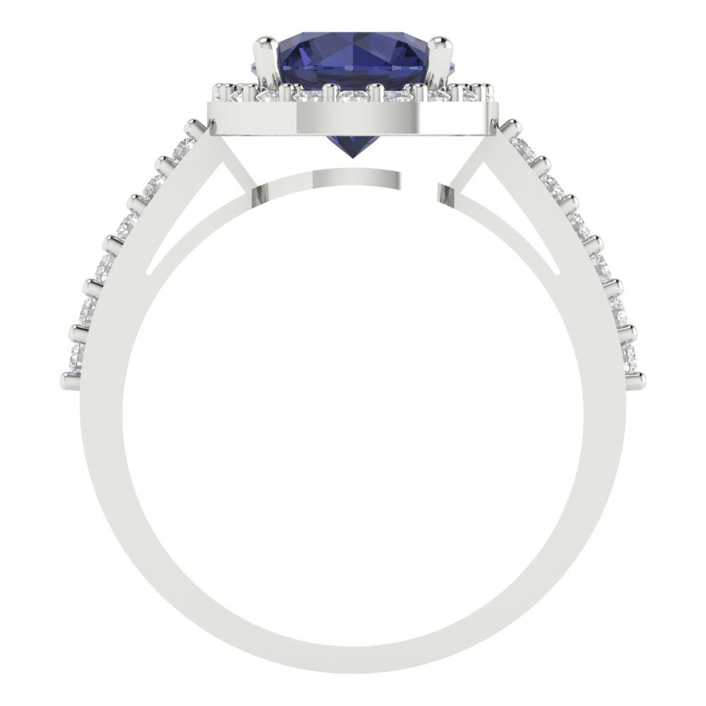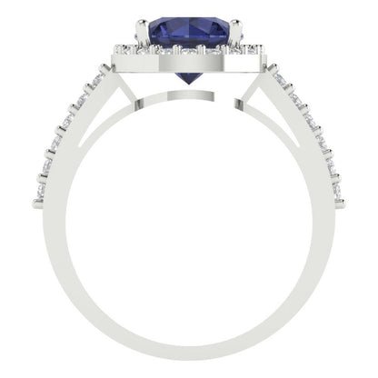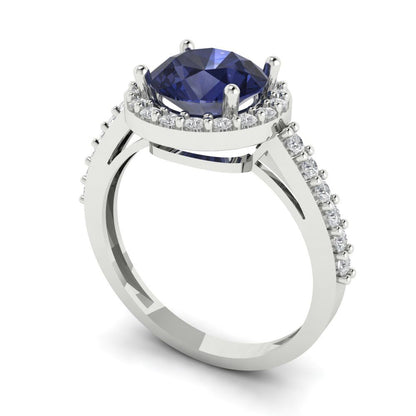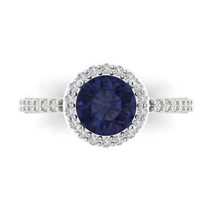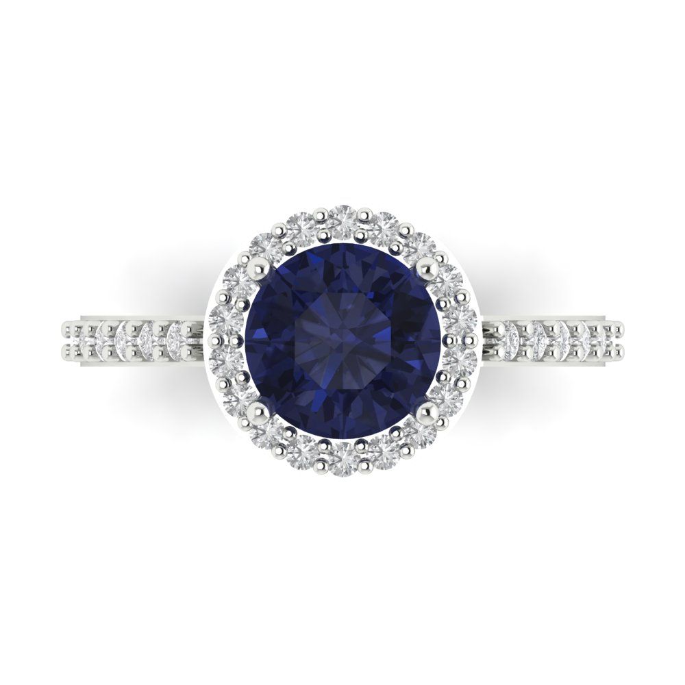 1.86 cttw Simulated Blue Sapphire Hidden Halo Engagement Ring - Solid Gold (Round Cut,7.5mm)