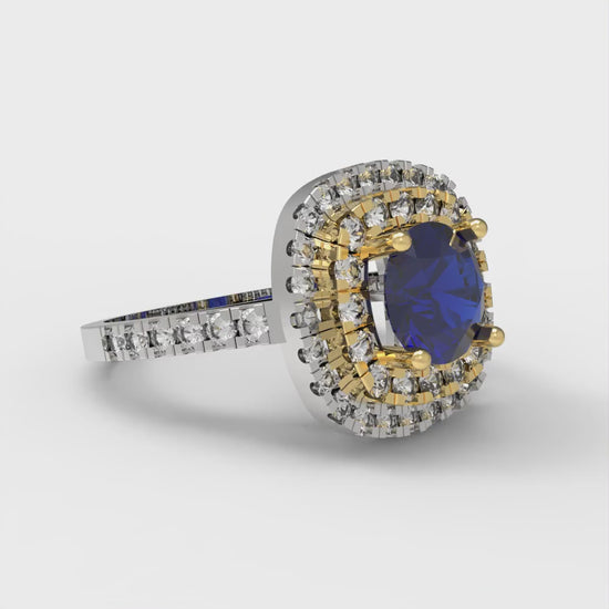 1.615 cttw Simulated Blue Sapphire Hidden Halo Engagement Ring - Solid Gold (Round Cut,6.5mm)