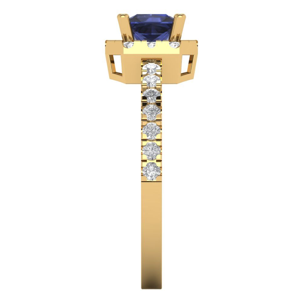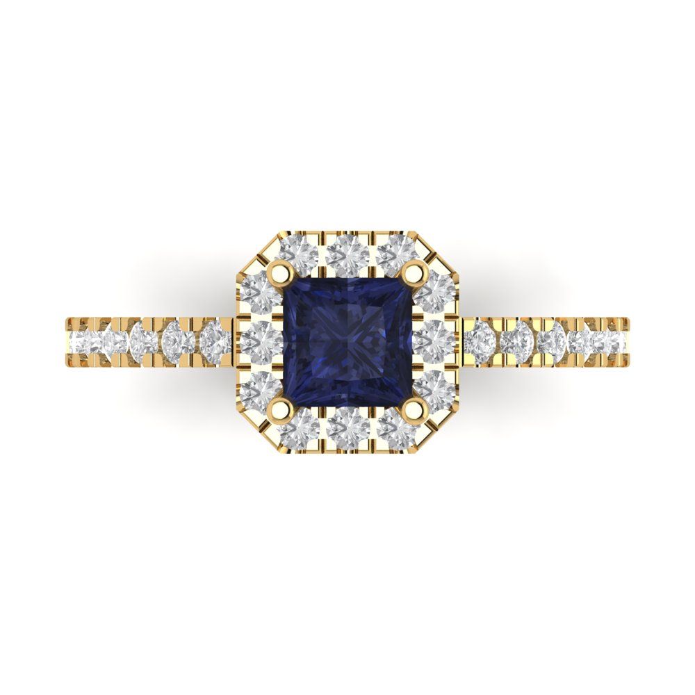 0.89 cttw Simulated Blue Sapphire Hidden Halo Engagement Ring - Solid Gold (Princess Cut,4.5mm)