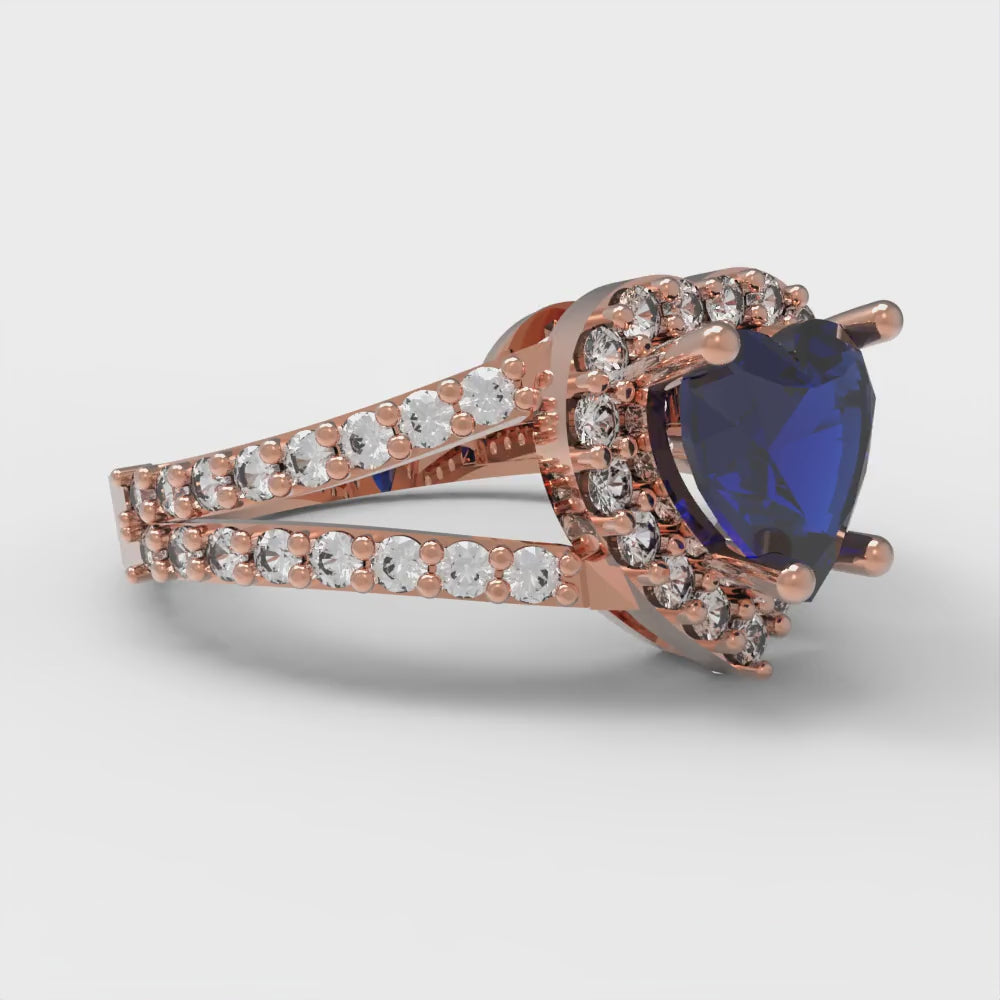 1.49 cttw Simulated Blue Sapphire Hidden Halo Engagement Ring - Solid Gold (Heart Cut,6.5mm)