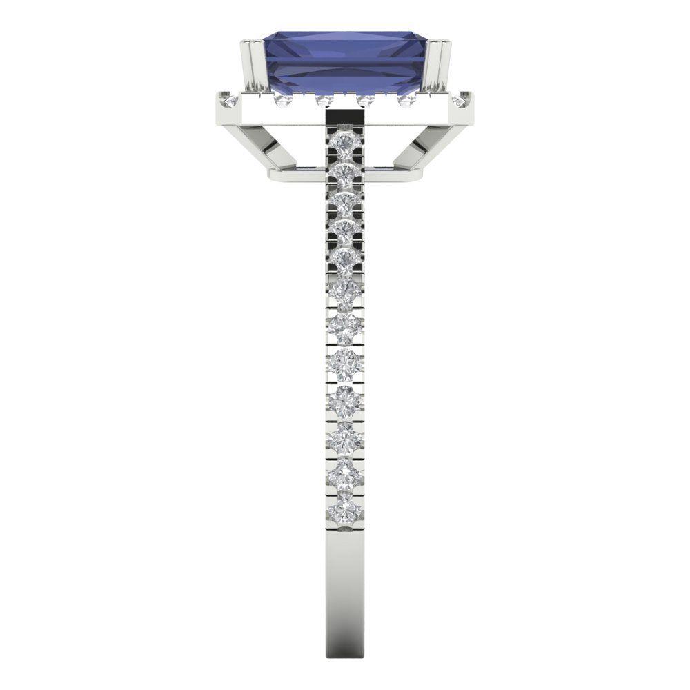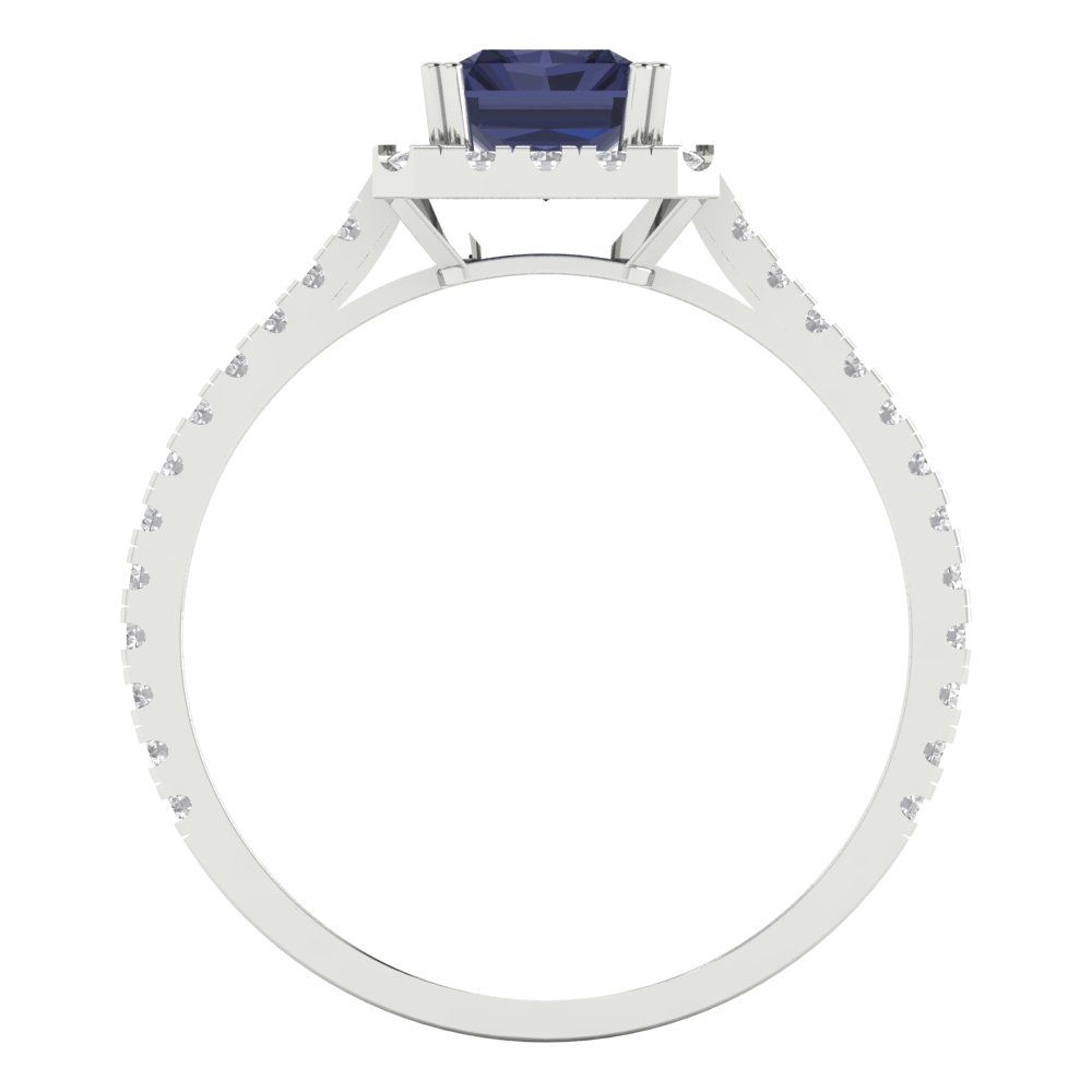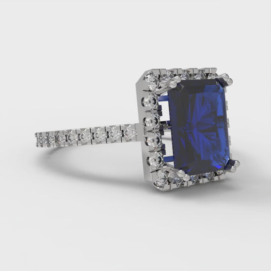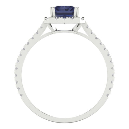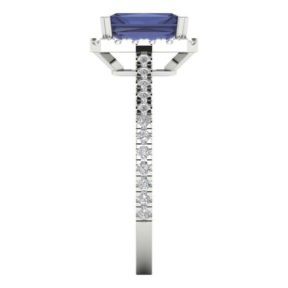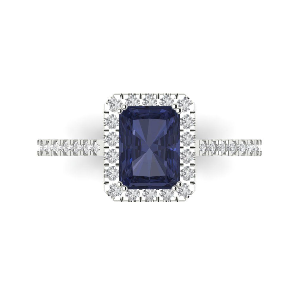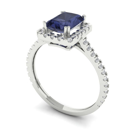 1.86 cttw Simulated Blue Sapphire Hidden Halo Engagement Ring - Solid Gold (Emerald Cut,7.5x5.5mm)
