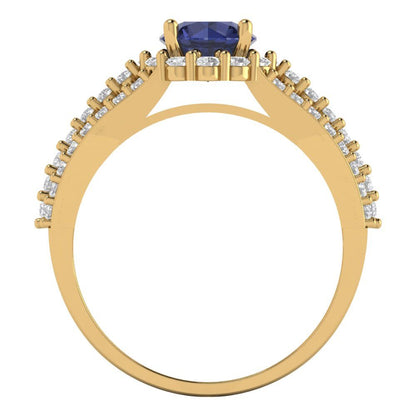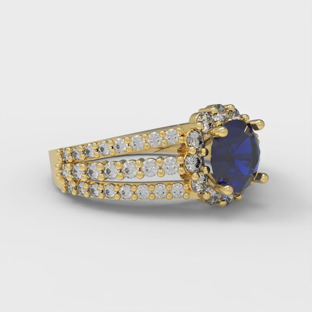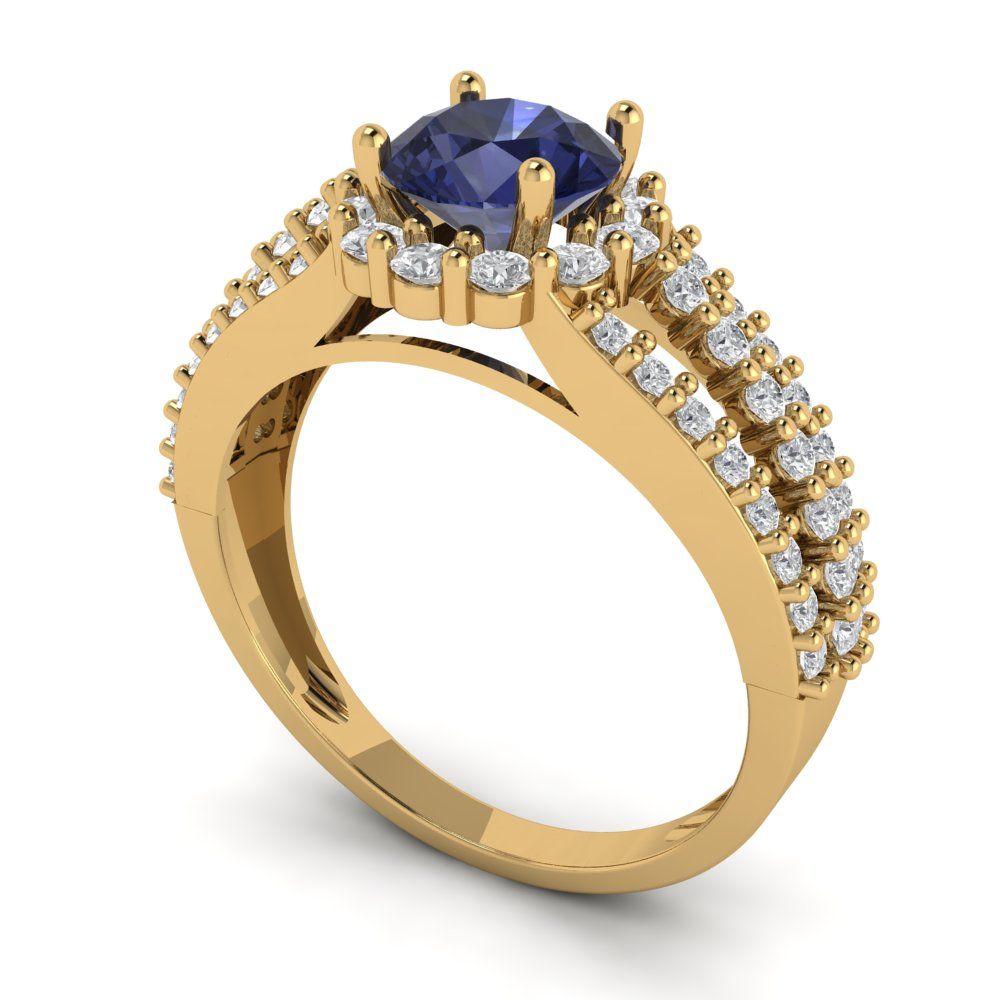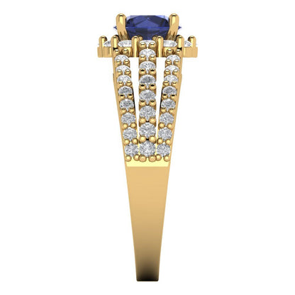 1.83 cttw Simulated Blue Sapphire Hidden Halo Engagement Ring - Solid Gold (Round Cut,6.5mm)