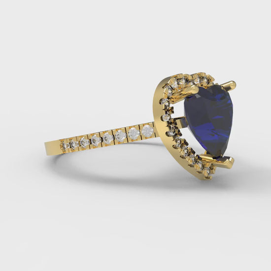 2.285 cttw Simulated Blue Sapphire Hidden Halo Engagement Ring - Solid Gold (Heart Cut,8mm)