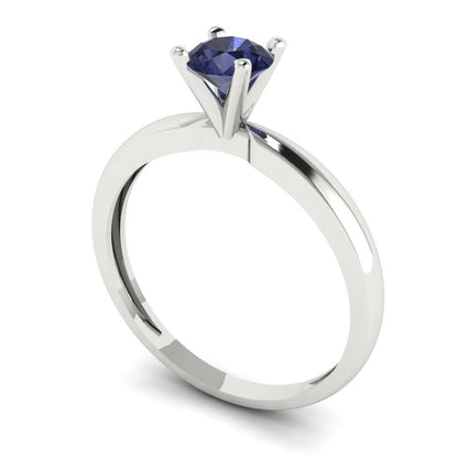 0.5 cttw Simulated Blue Sapphire Solitaire Engagement Ring - Solid Gold (Round Cut,5.0mm)