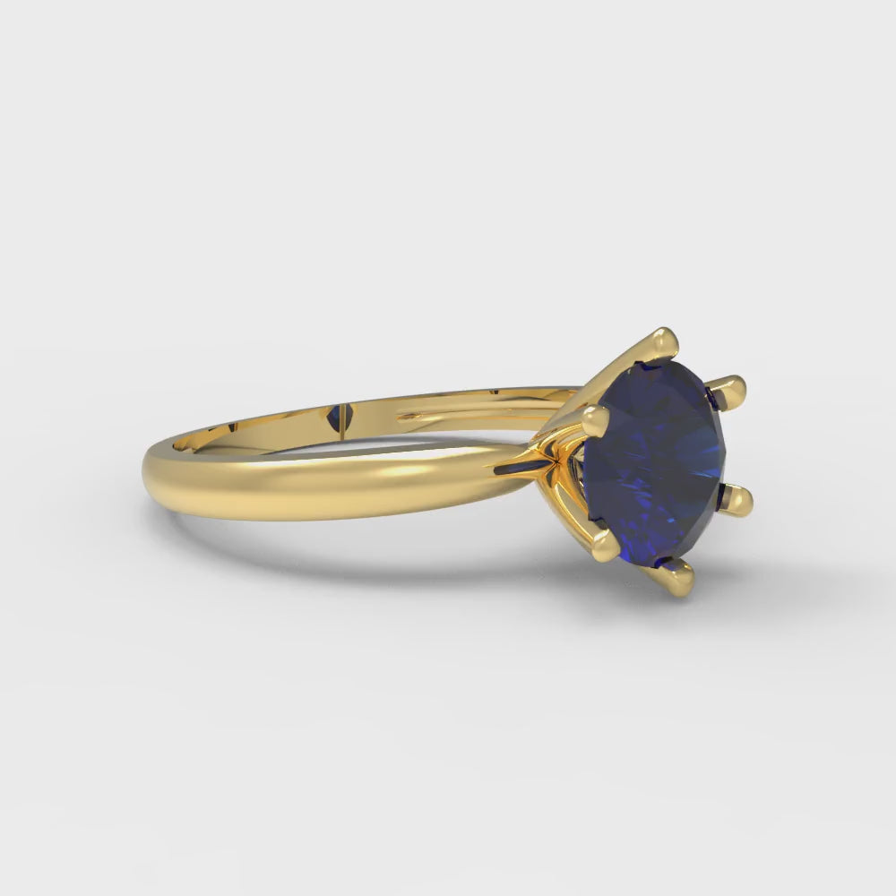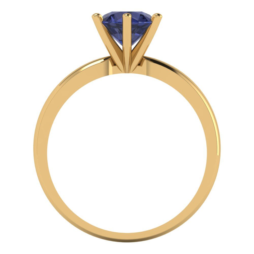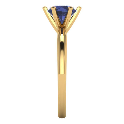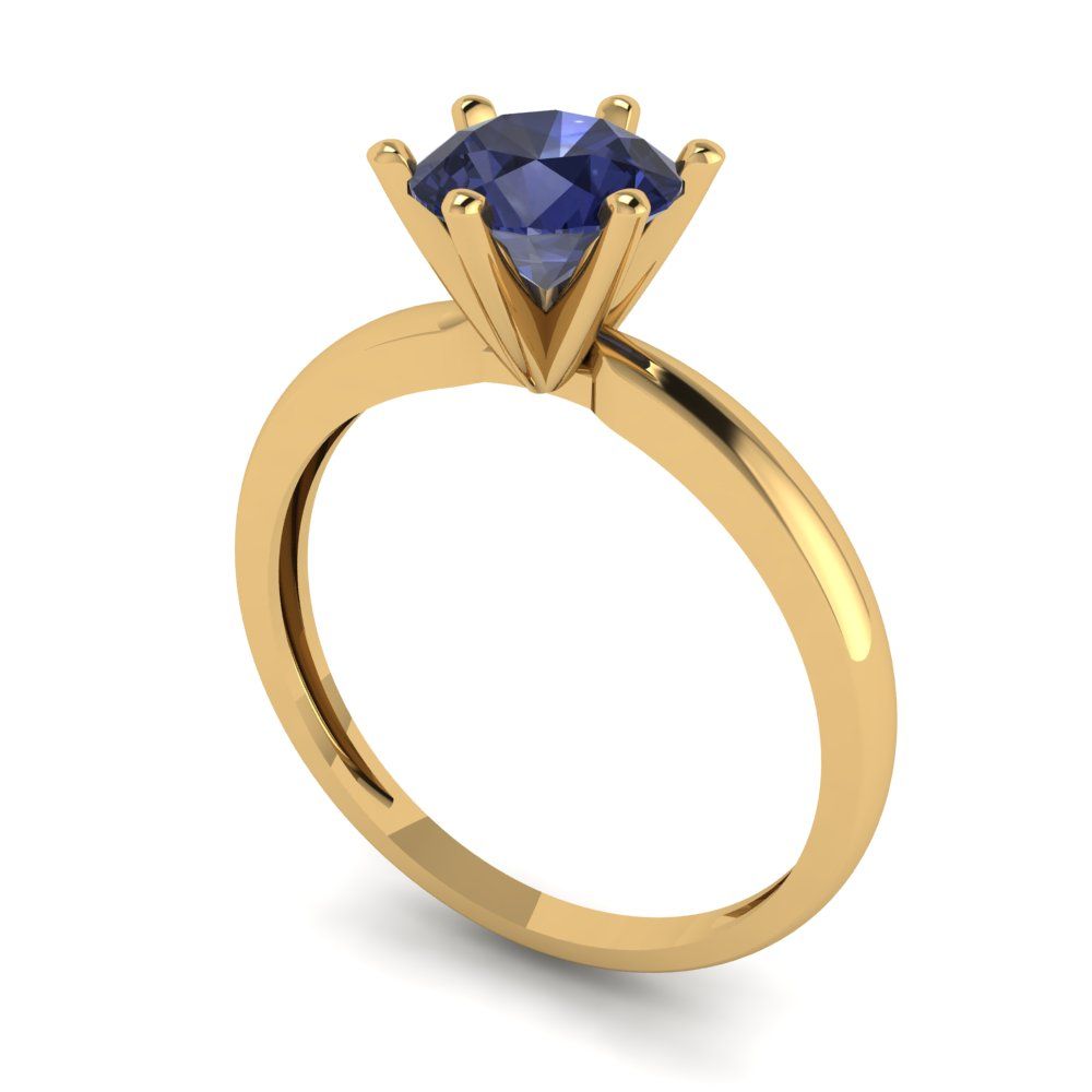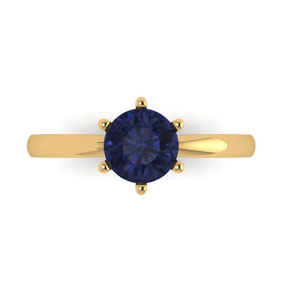 1 cttw Simulated Blue Sapphire Solitaire Engagement Ring - Solid Gold (Round Cut,6.5mm)