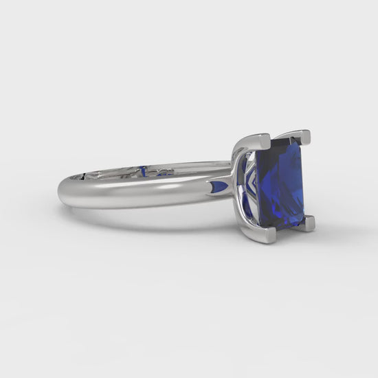 1 cttw Simulated Blue Sapphire Solitaire Engagement Ring - Solid Gold (Emerald Cut,7X5mm)