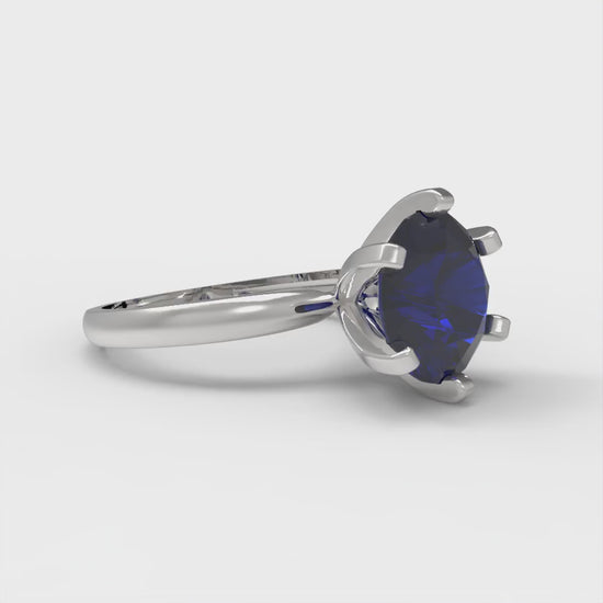 3 cttw Simulated Blue Sapphire Solitaire Engagement Ring - Solid Gold (Round Cut,9mm)