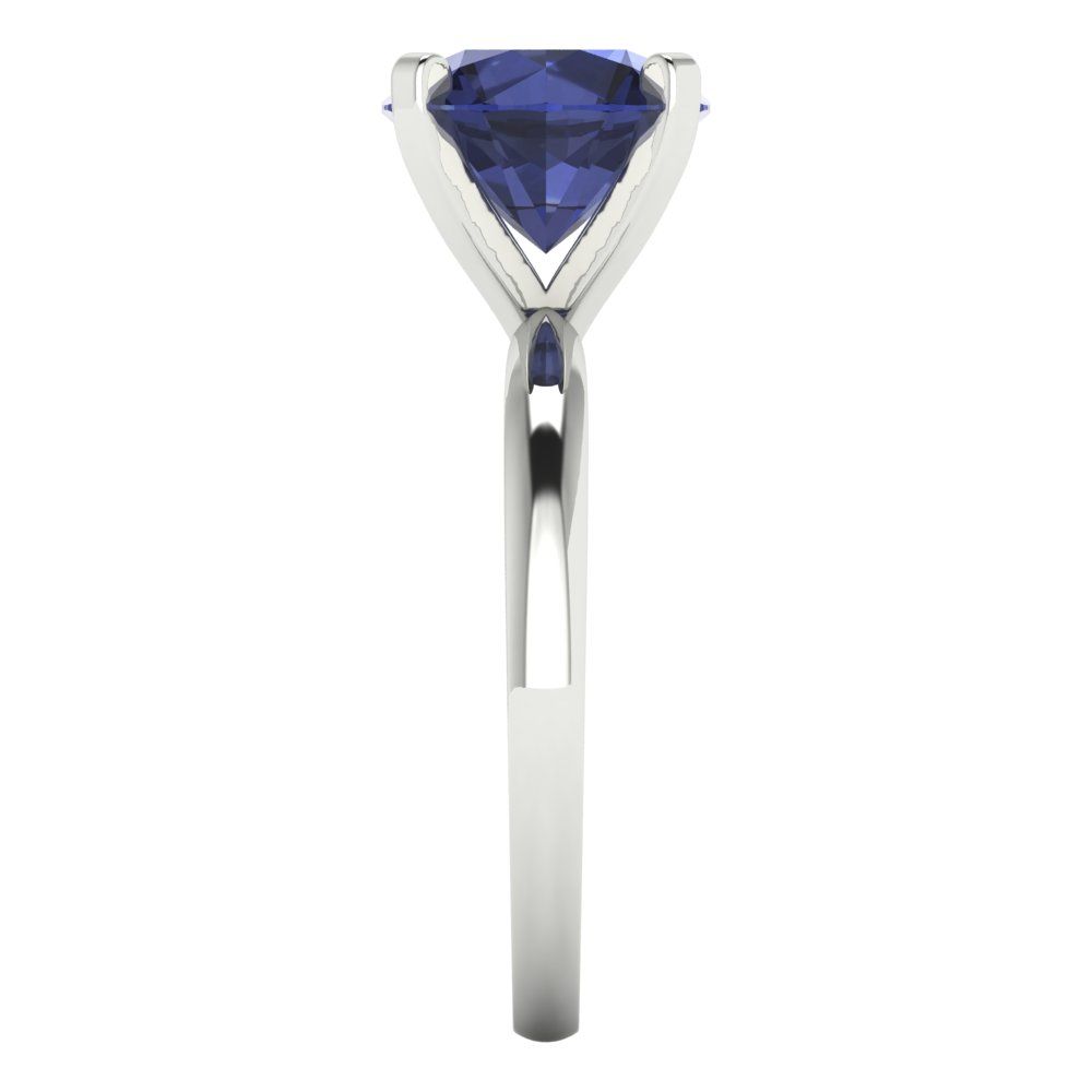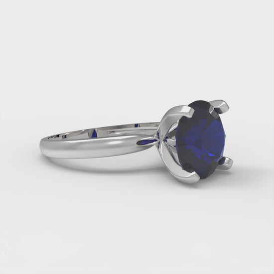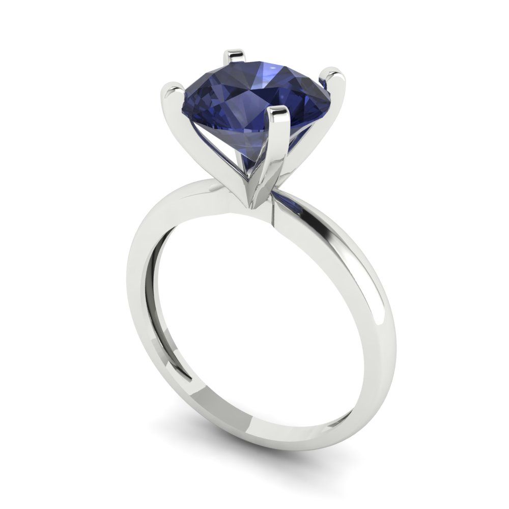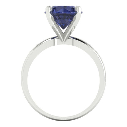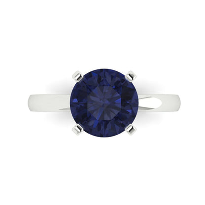 3 cttw Simulated Blue Sapphire Solitaire Engagement Ring - Solid Gold (Round Cut,9mm)