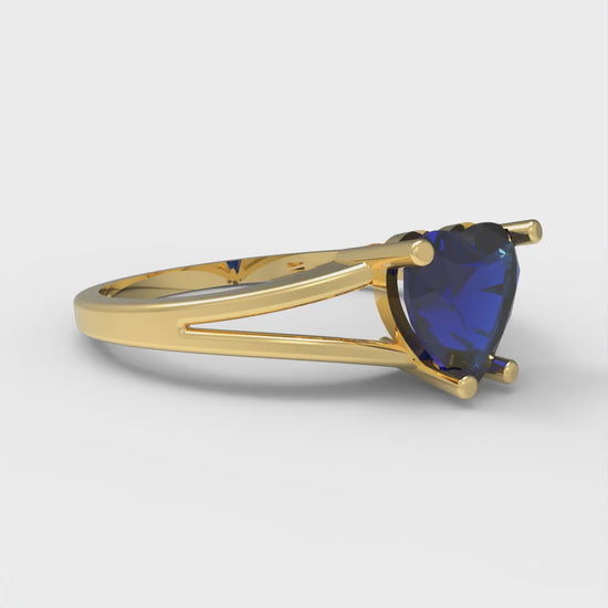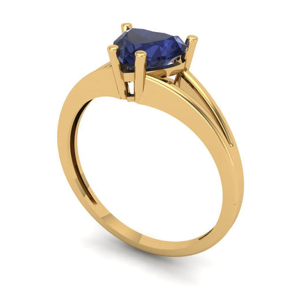 1 cttw Simulated Blue Sapphire Solitaire Engagement Ring - Solid Gold (Heart Cut,6.5mm)