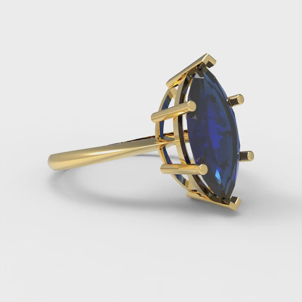 2.5 cttw Simulated Blue Sapphire Solitaire Engagement Ring - Solid Gold (Marquise Cut ,13x6.5mm)