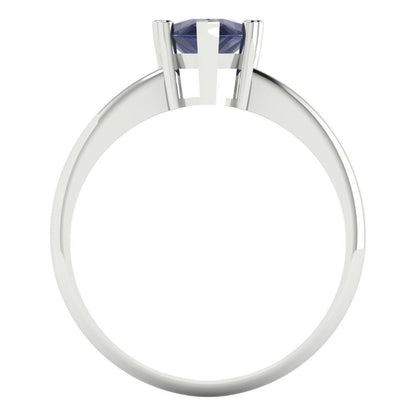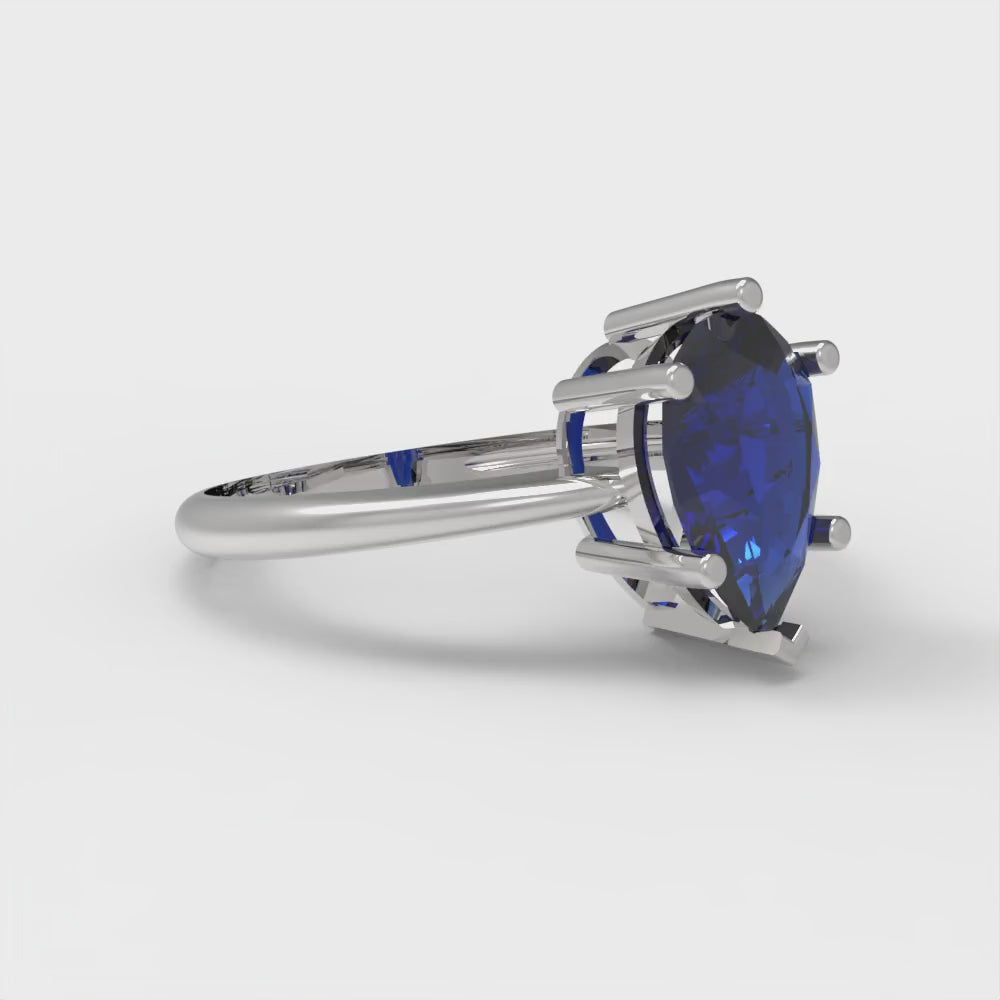 1.5 cttw Simulated Blue Sapphire Solitaire Engagement Ring - Solid Gold (Pear Cut,9x6mm)