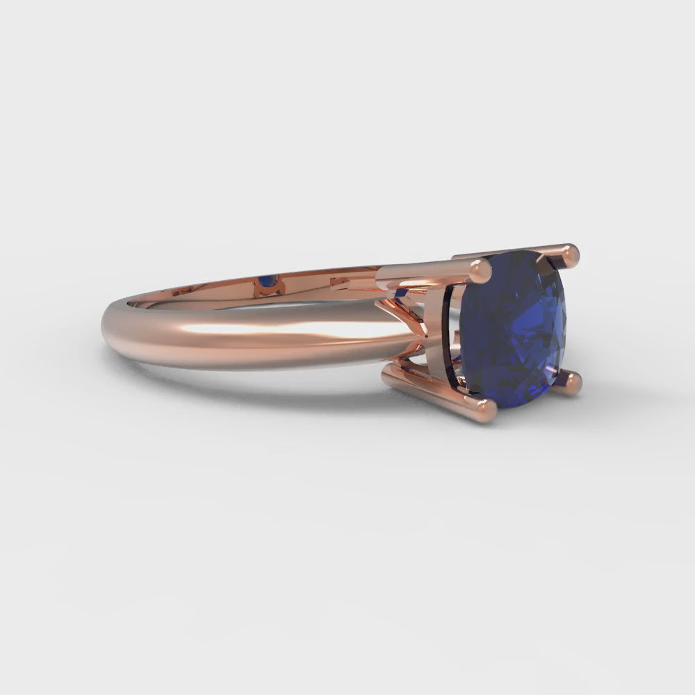 1 cttw Simulated Blue Sapphire Solitaire Engagement Ring - Solid Gold (Cushion Cut,6mm)