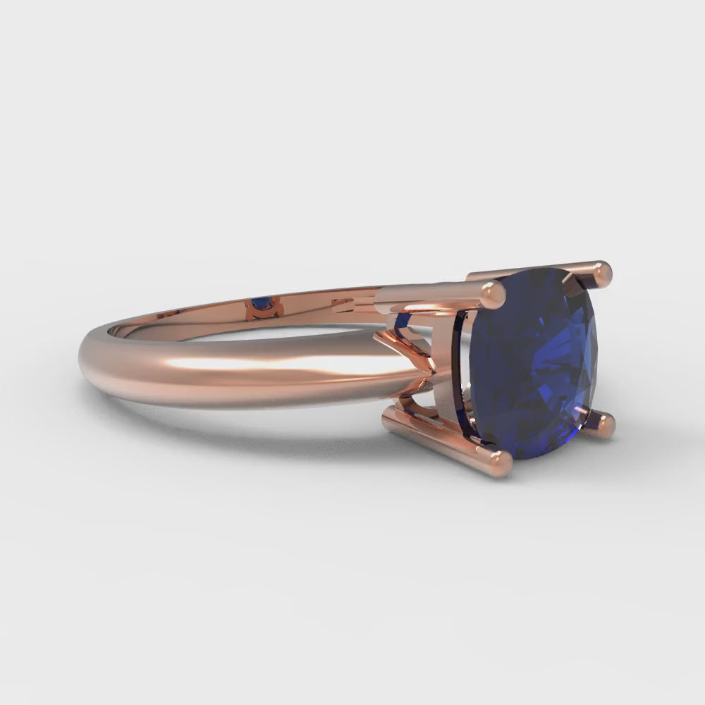 1.5 cttw Simulated Blue Sapphire Solitaire Engagement Ring - Solid Gold (Cushion Cut,6.5mm)