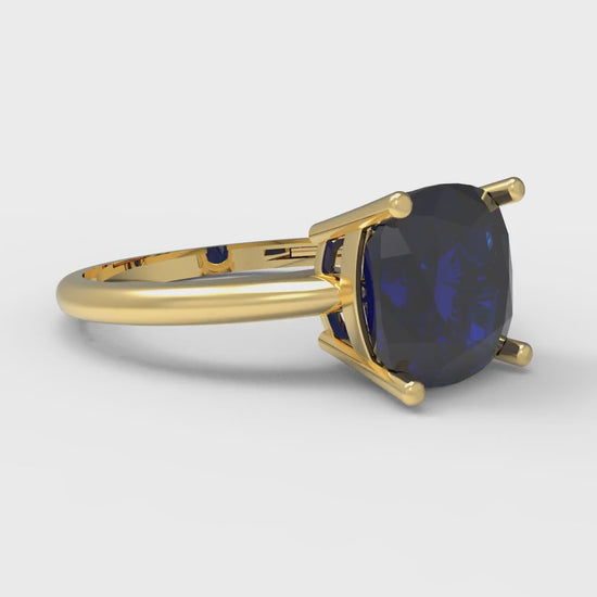 2.5 cttw Simulated Blue Sapphire Solitaire Engagement Ring - Solid Gold (Cushion Cut,8mm)