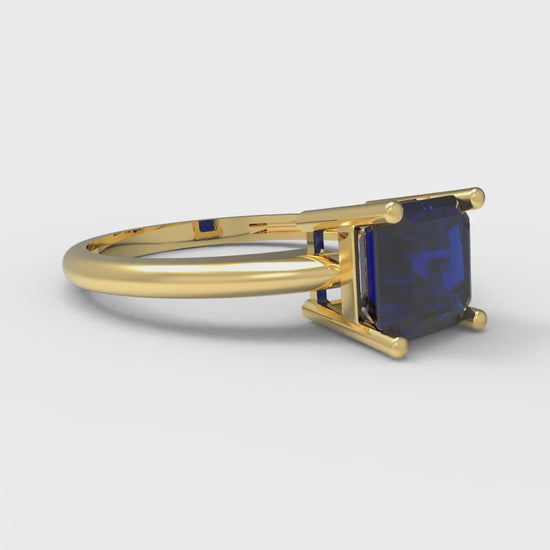 1 cttw Simulated Blue Sapphire Solitaire Engagement Ring - Solid Gold (Asscher Cut,6mm)