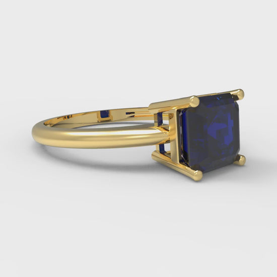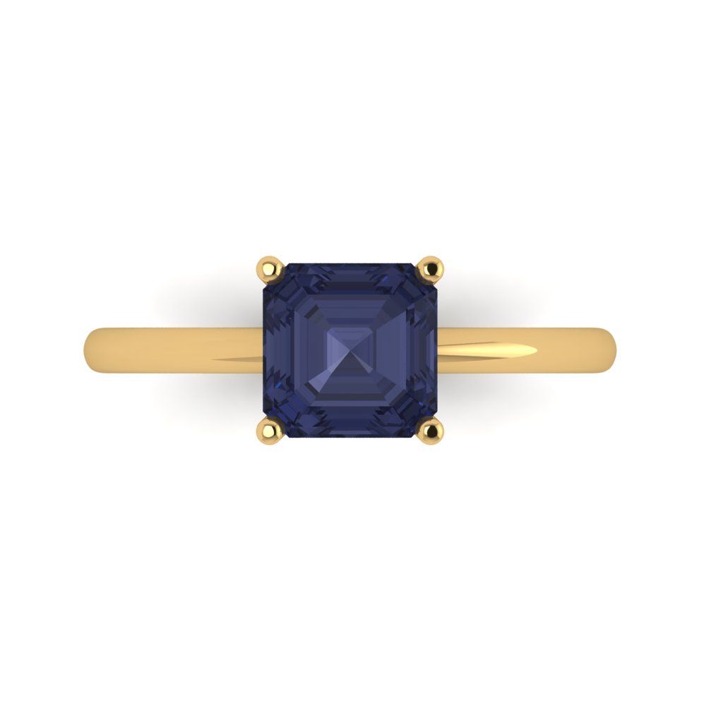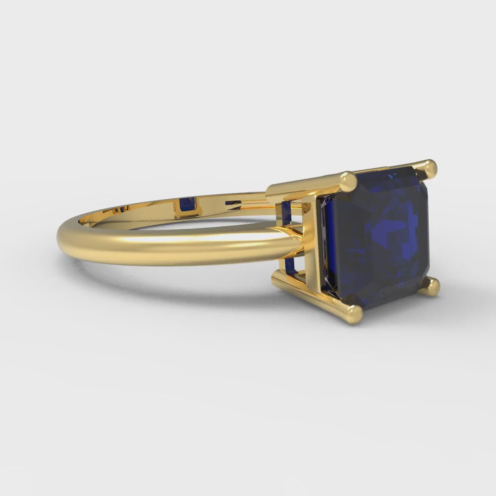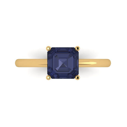 1.5 cttw Simulated Blue Sapphire Solitaire Engagement Ring - Solid Gold (Asscher Cut,6.5mm)