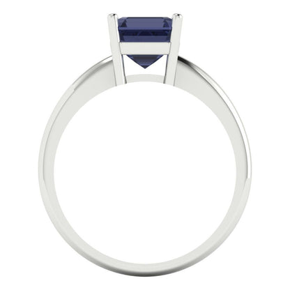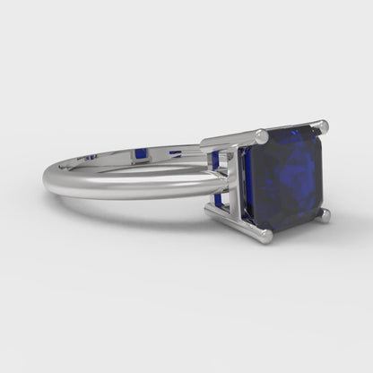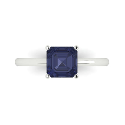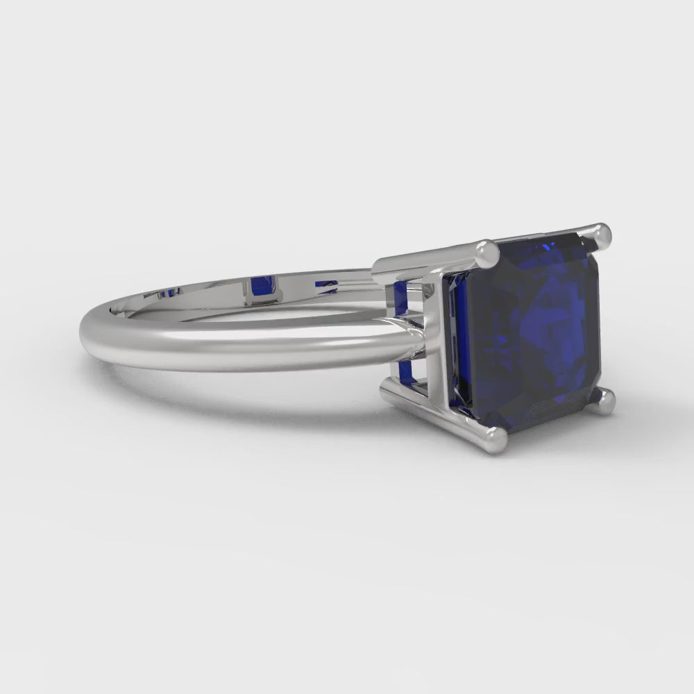 1.5 cttw Simulated Blue Sapphire Solitaire Engagement Ring - Solid Gold (Asscher Cut,6.5mm)