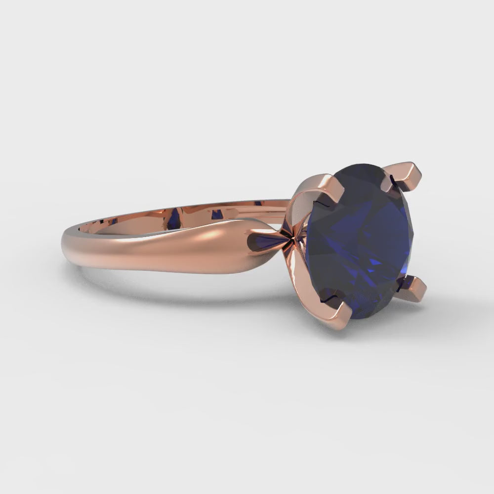 2.5 cttw Simulated Blue Sapphire Solitaire Engagement Ring - Solid Rose Gold (VVS1, Round Cut,8.5mm)