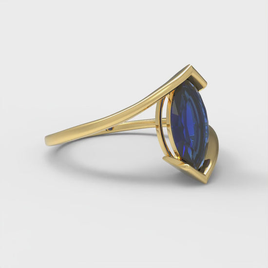 2 cttw Simulated Blue Sapphire Solitaire Engagement Ring - Solid Yellow Gold (VVS1, Marquise Cut,12x6mm )