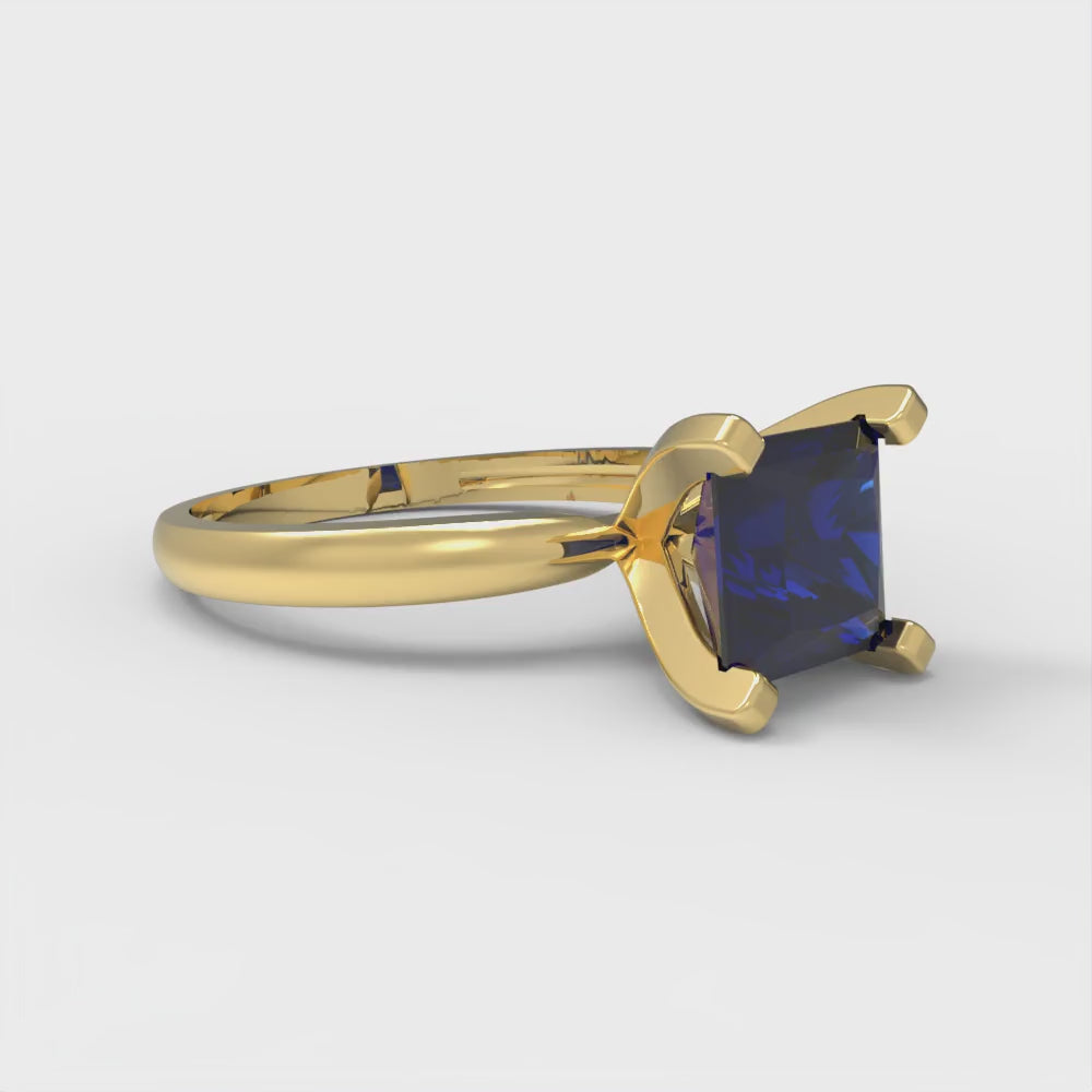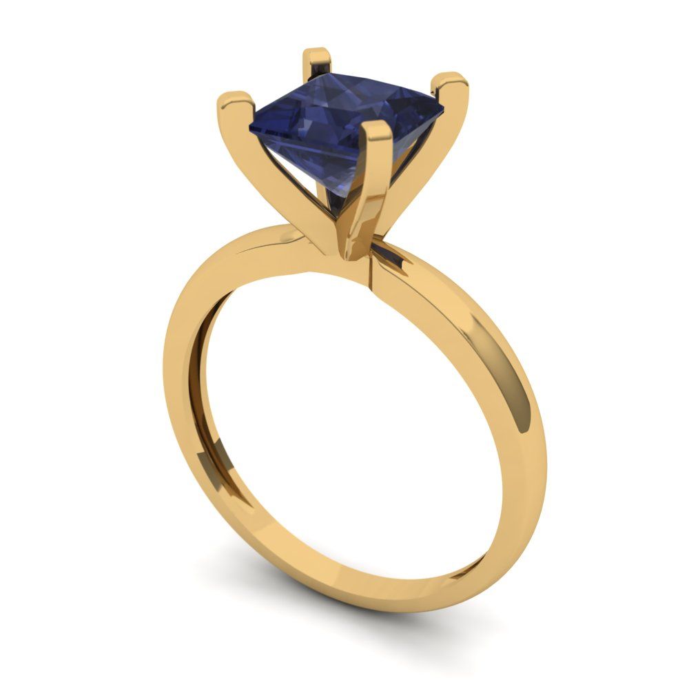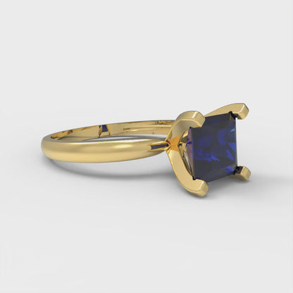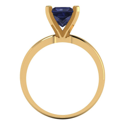 1.5 cttw Simulated Blue Sapphire Solitaire Engagement Ring - Solid Gold (Princess Cut,6.5mm)