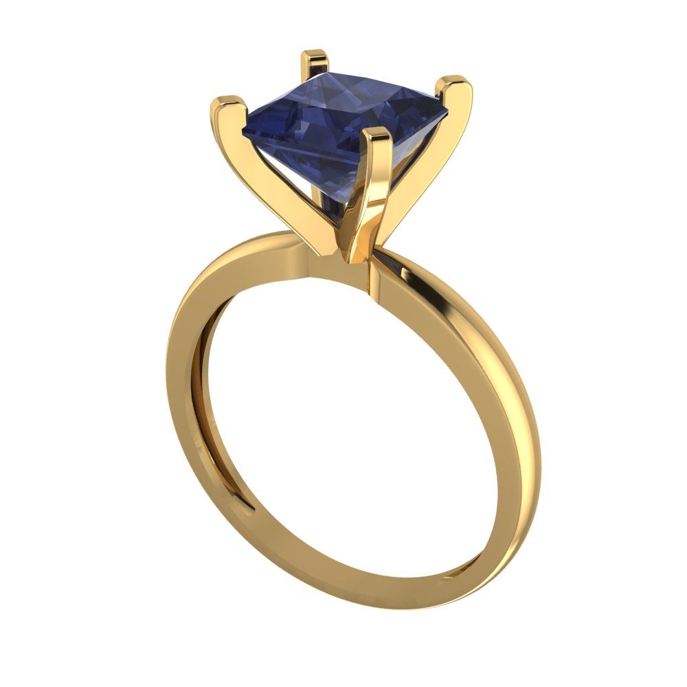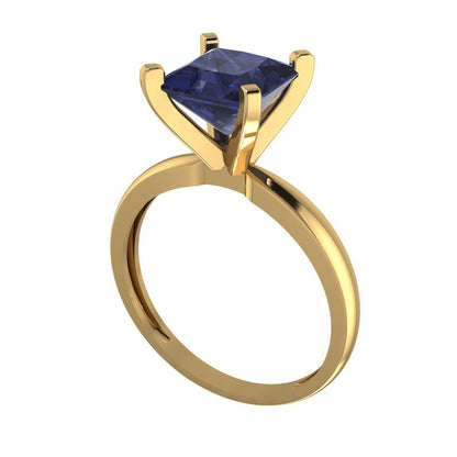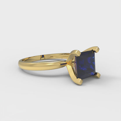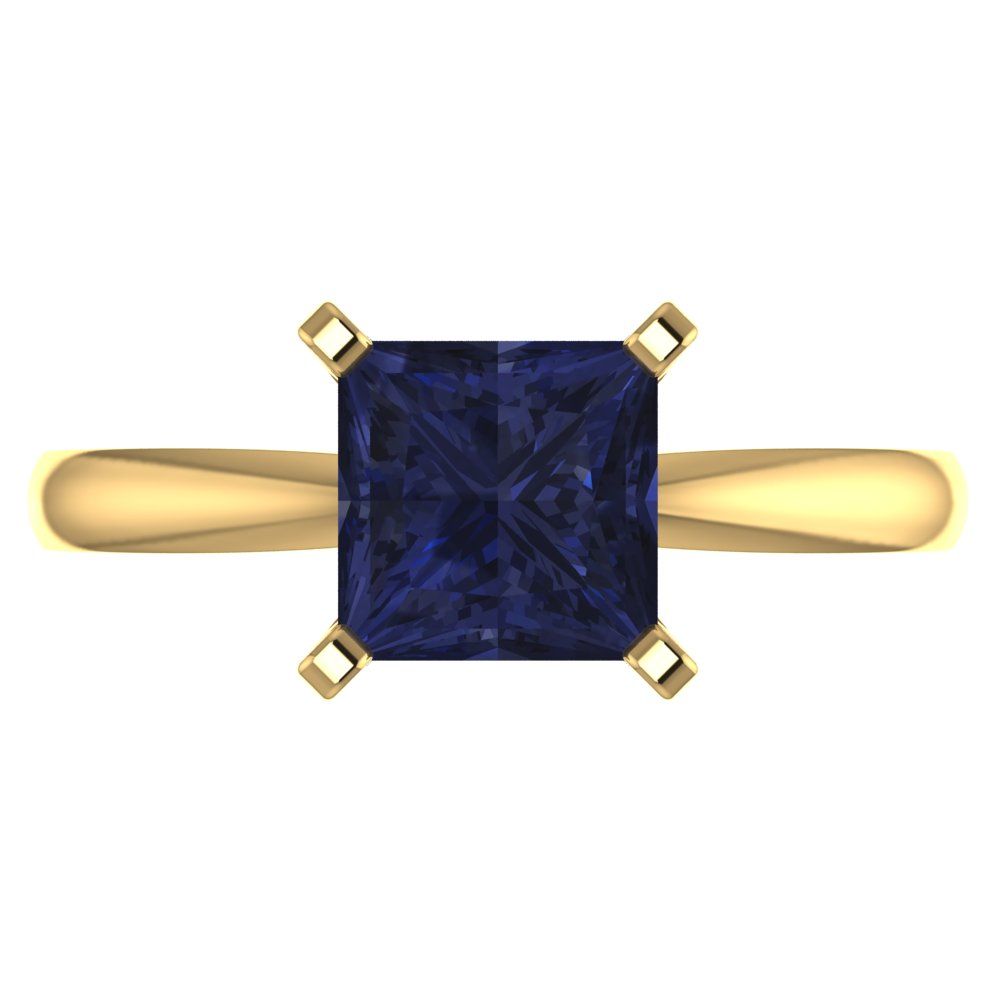 2 cttw Simulated Blue Sapphire Solitaire Engagement Ring - Solid Gold (Princess Cut,7.0mm)