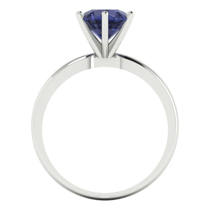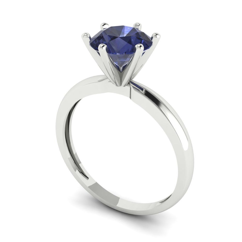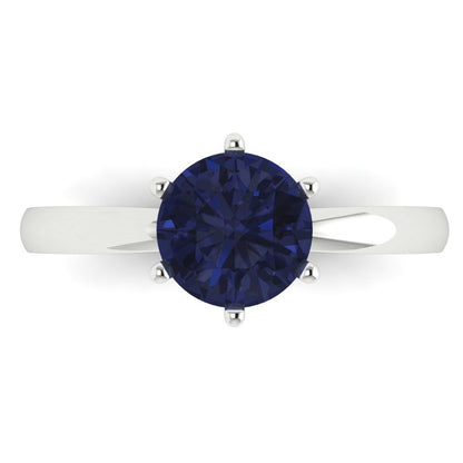 1.5 cttw Simulated Blue Sapphire Solitaire Engagement Ring - Solid Gold (Round Cut,7.5mm)