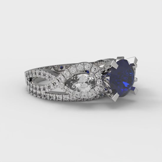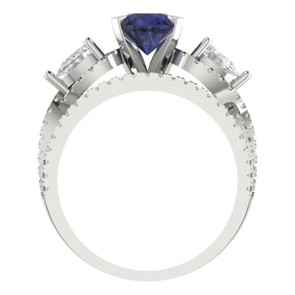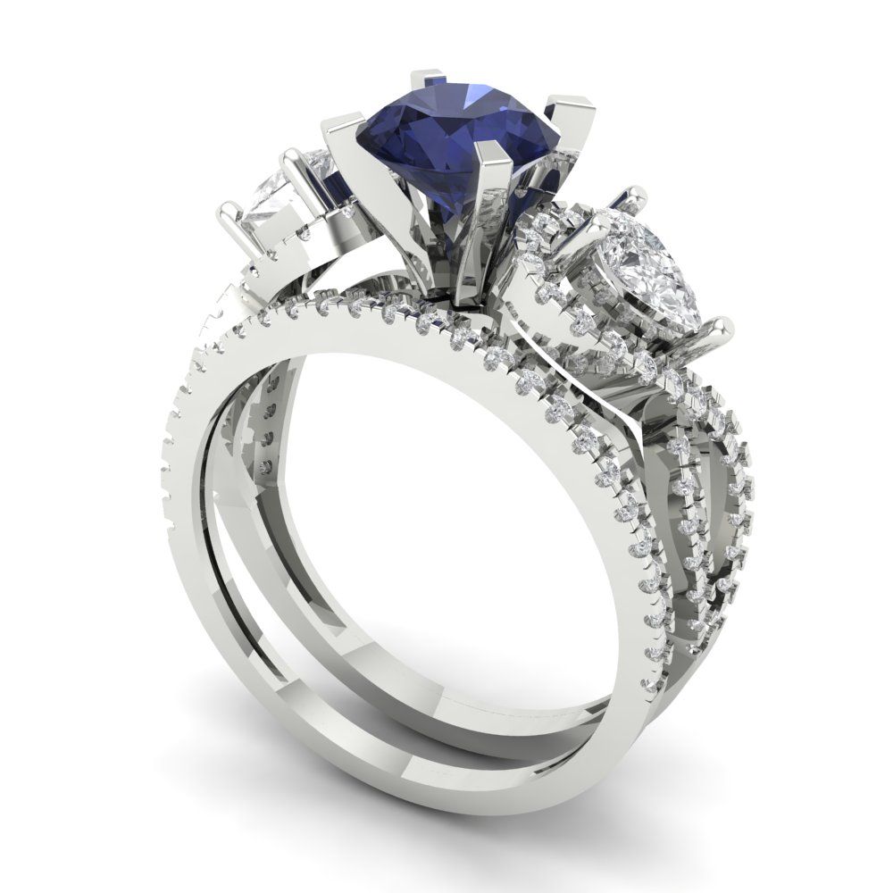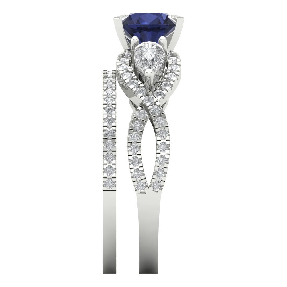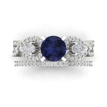 1.925 cttw Round Cut Simulated Blue Sapphire Bridal Set - Solid White Gold Engagement Ring & Wedding Band