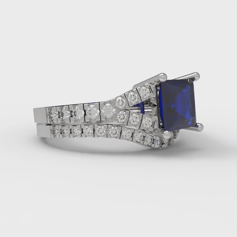 3.4 cttw Princess Cut Simulated Blue Sapphire Bridal Set - Solid White Gold Engagement Ring & Wedding Band