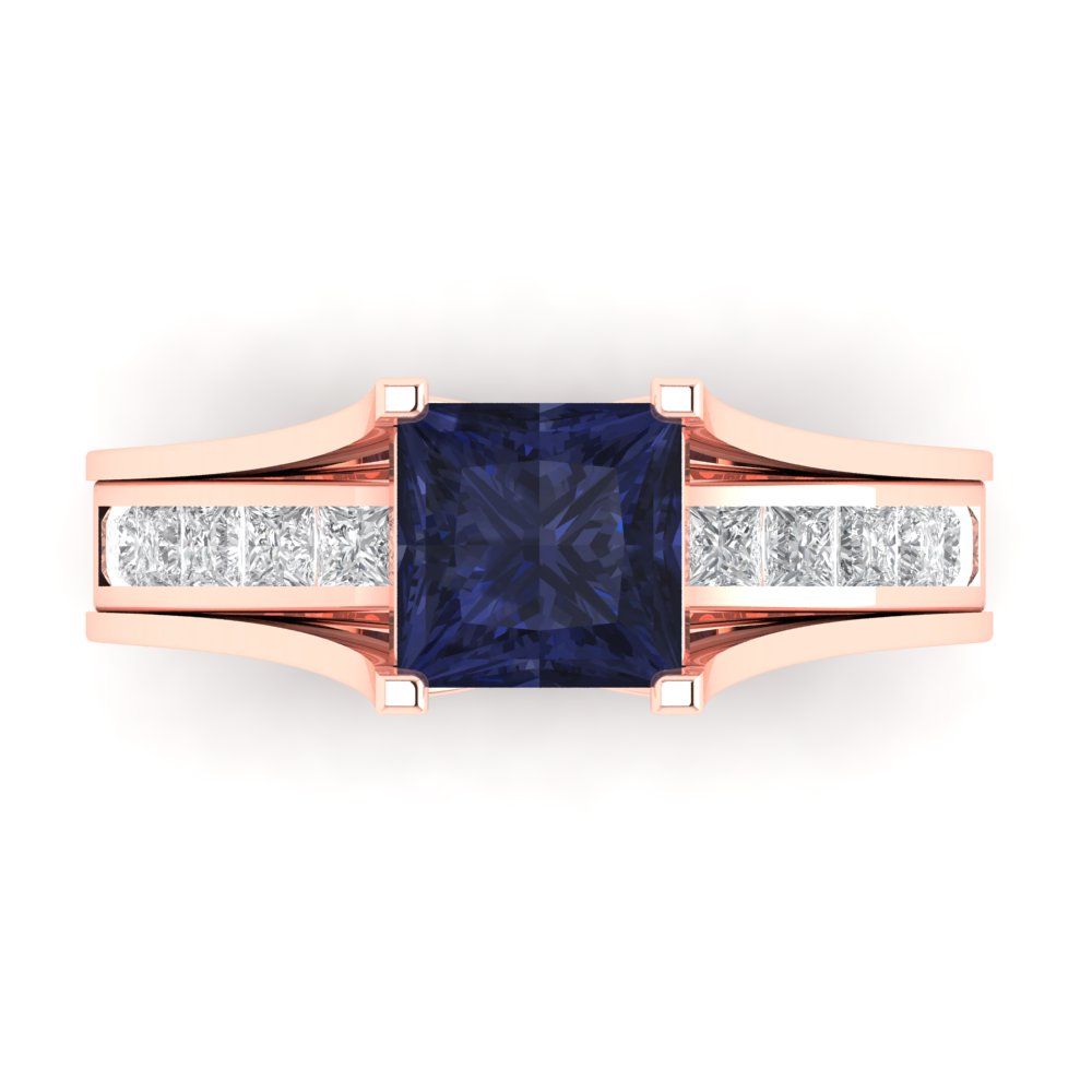 2.28 cttw Princess Cut Simulated Blue Sapphire Bridal Set - Solid Rose Gold Engagement Ring & Wedding Band