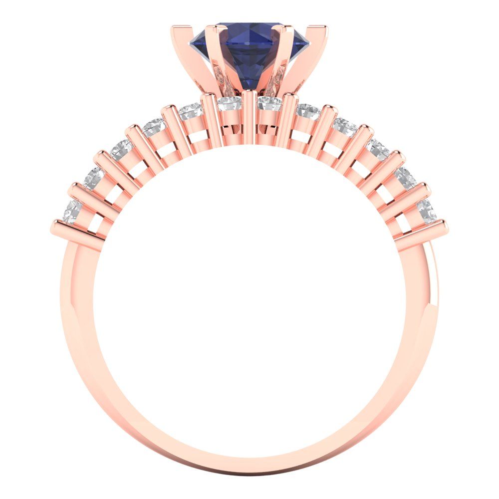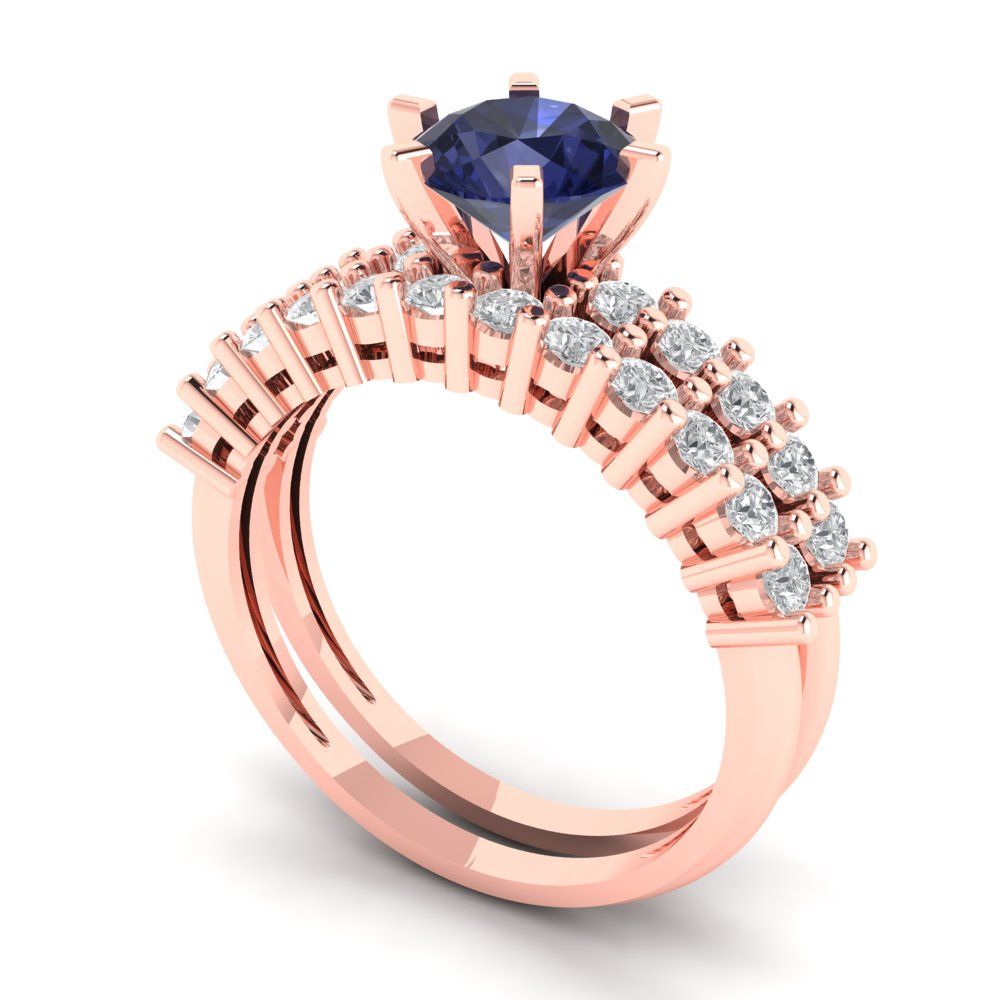 1.66 cttw Round Cut Simulated Blue Sapphire Bridal Set - Solid Rose Gold Engagement Ring & Wedding Band