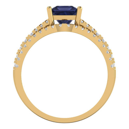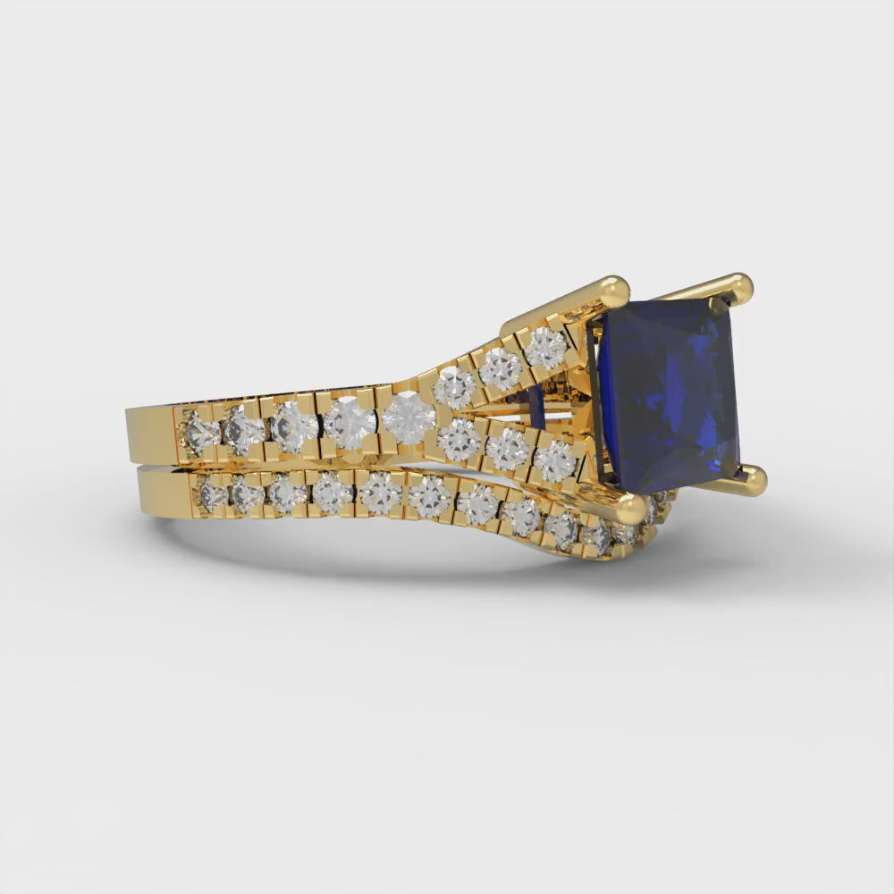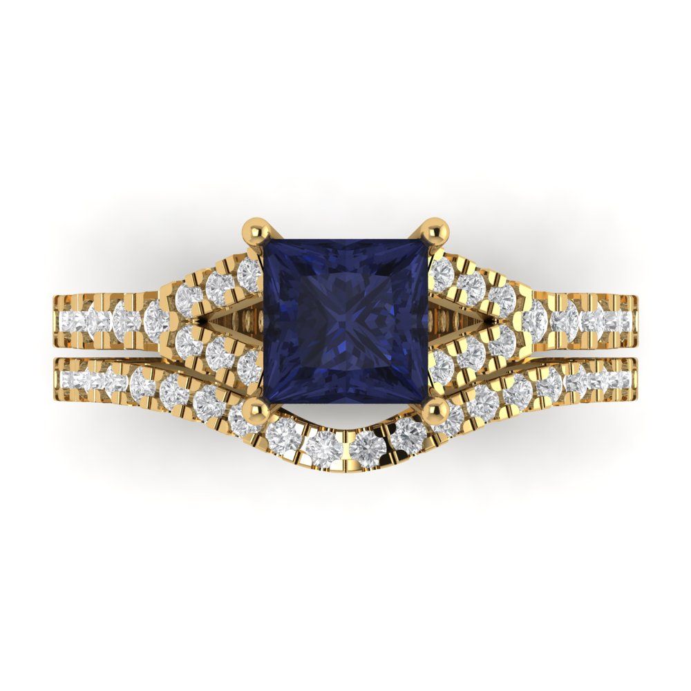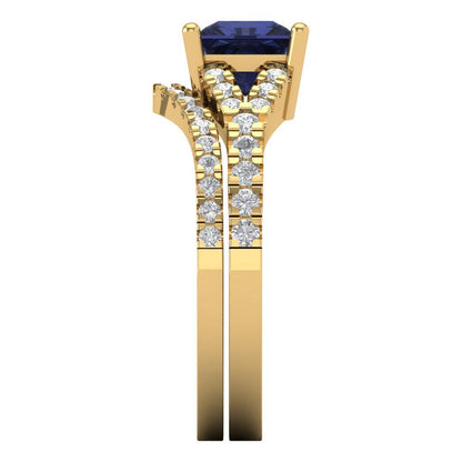3.4 cttw Princess Cut Simulated Blue Sapphire Bridal Set - Solid Yellow Gold Engagement Ring & Wedding Band