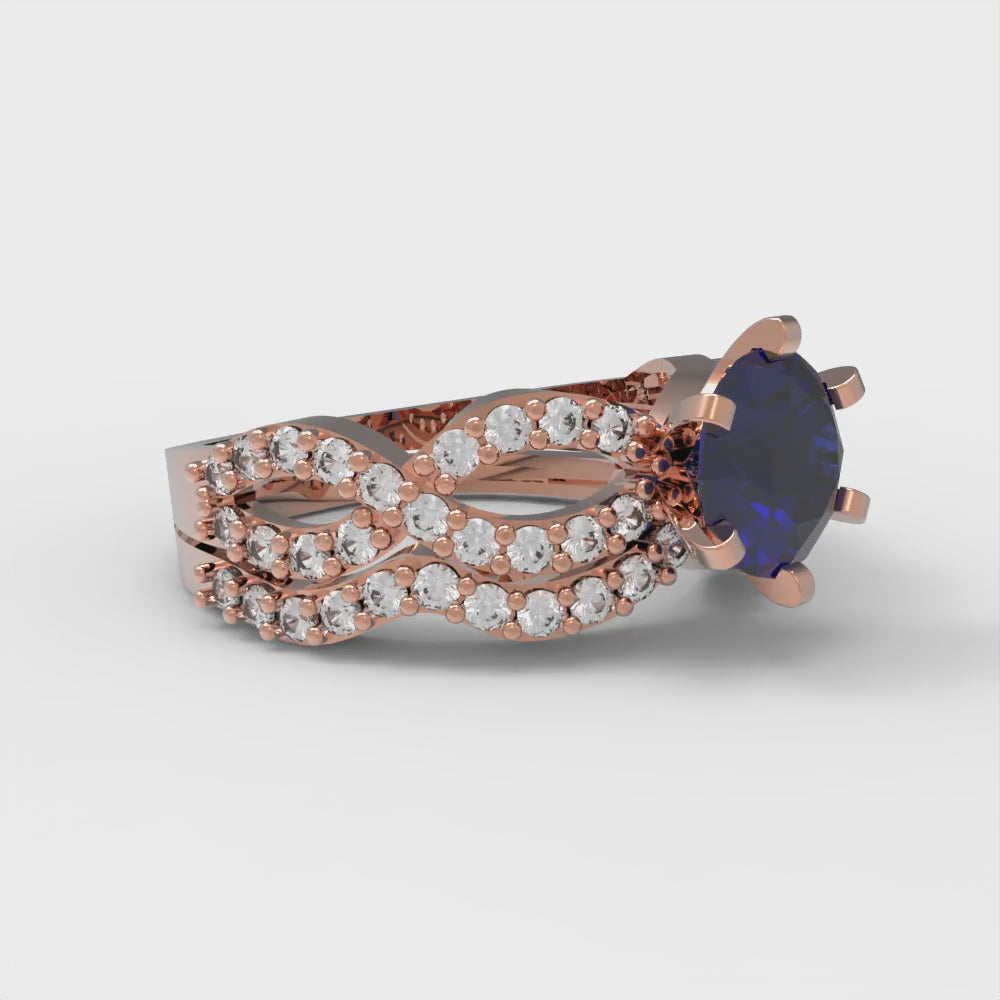 1.57 cttw Round Cut Simulated Blue Sapphire Bridal Set - Solid Rose Gold Engagement Ring & Wedding Band