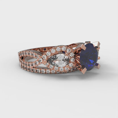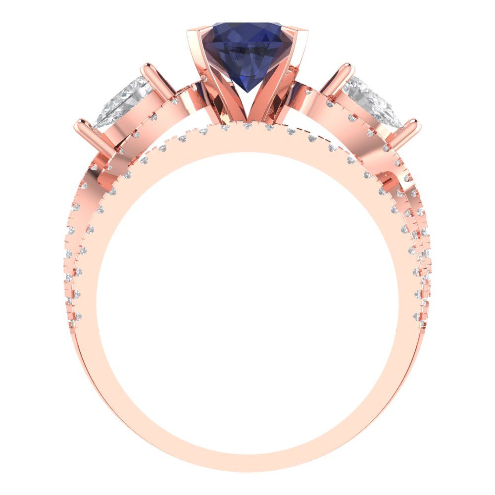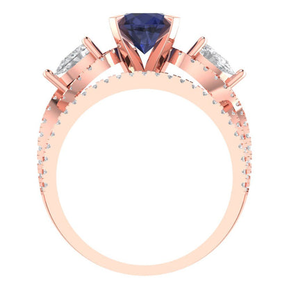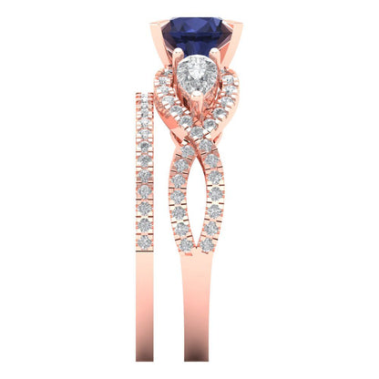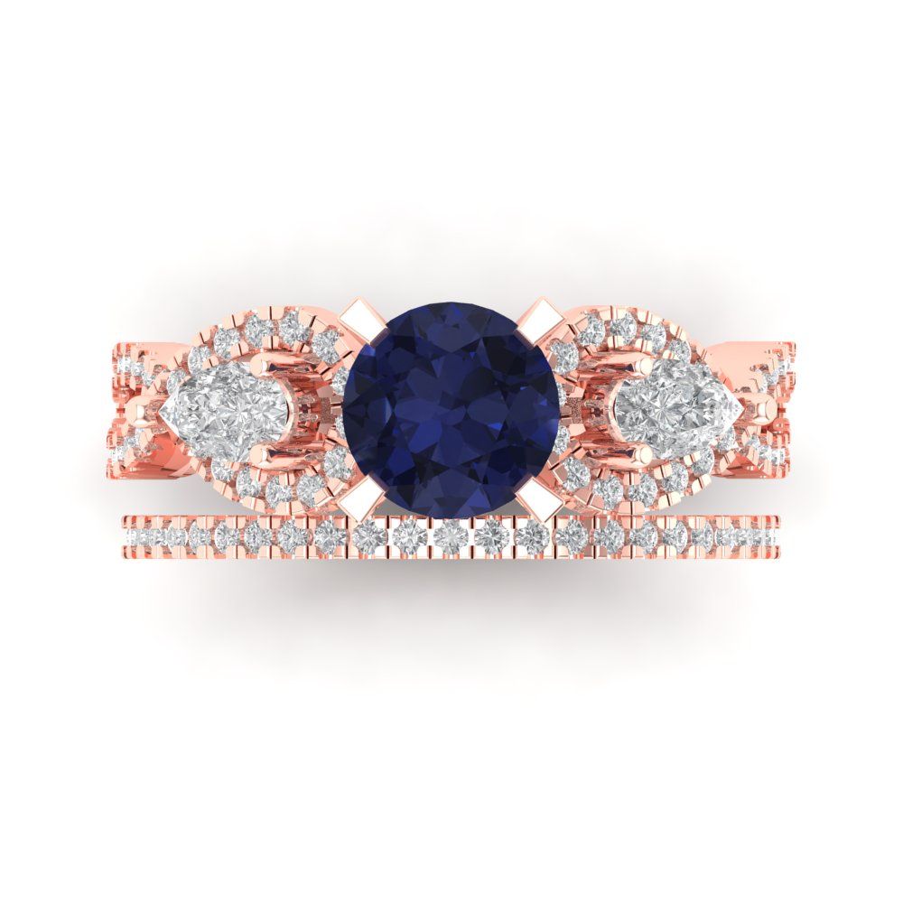 1.925 cttw Round Cut Simulated Blue Sapphire Bridal Set - Solid Rose Gold Engagement Ring & Wedding Band
