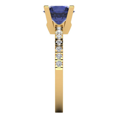 1.71 cttw Simulated Blue Sapphire Solitaire with Zirconia Simulated Diamond Accents Engagement Ring - Solid Gold (Round Cut,7.5mm)
