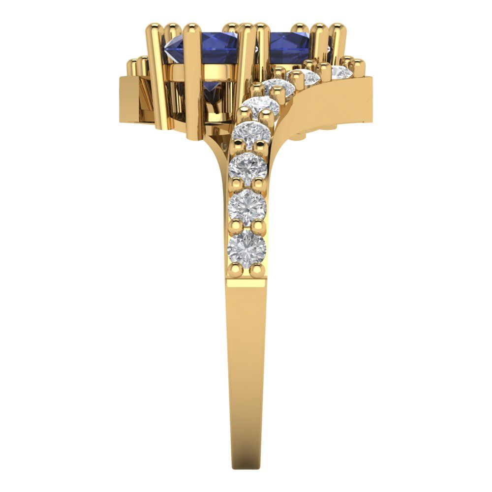 1.48 cttw Simulated Blue Sapphire Solitaire with Zirconia Simulated Diamond Accents Engagement Ring - Solid Gold (Round Cut,5mm)