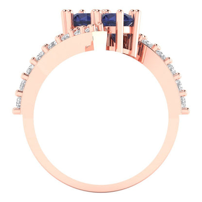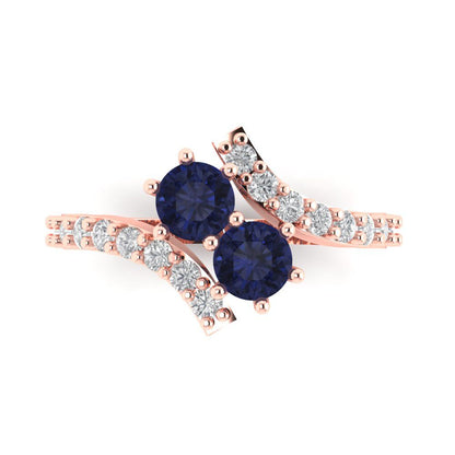 1.48 cttw Simulated Blue Sapphire Solitaire with Zirconia Simulated Diamond Accents Engagement Ring - Solid Gold (Round Cut,5mm)