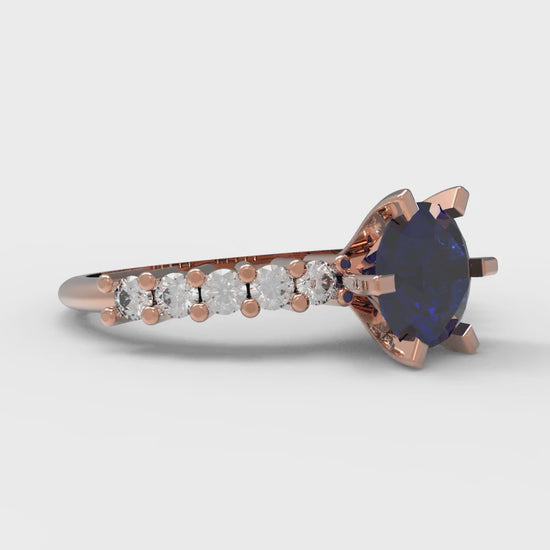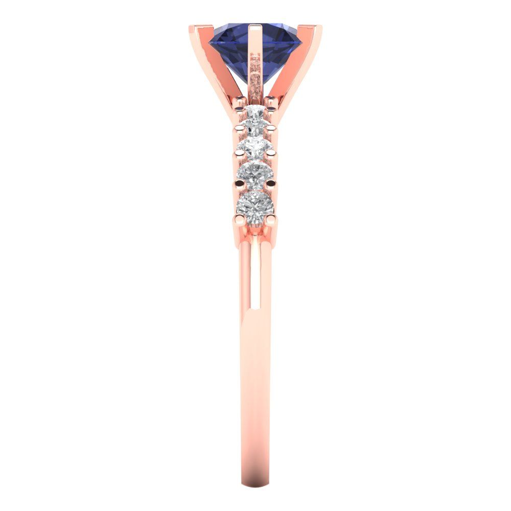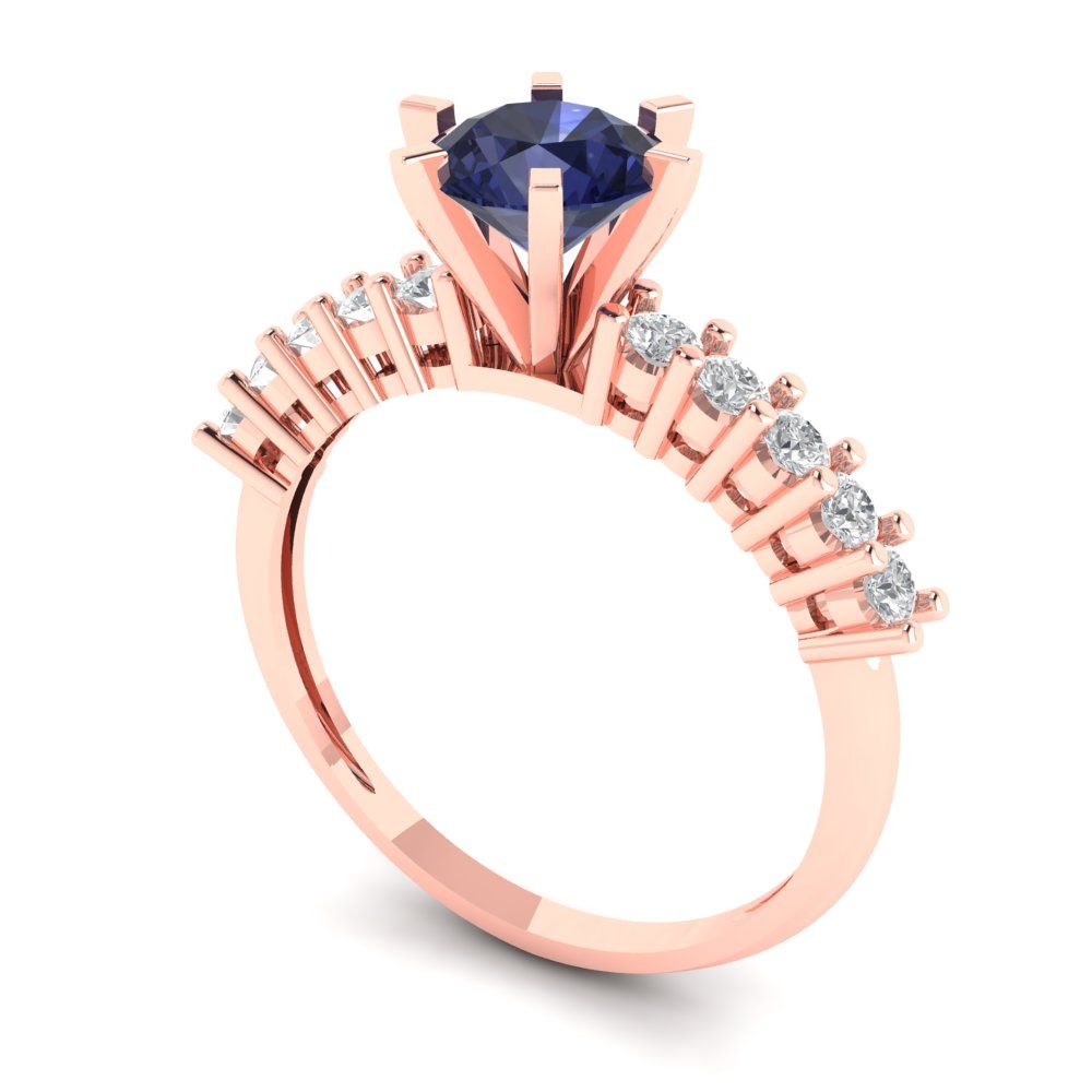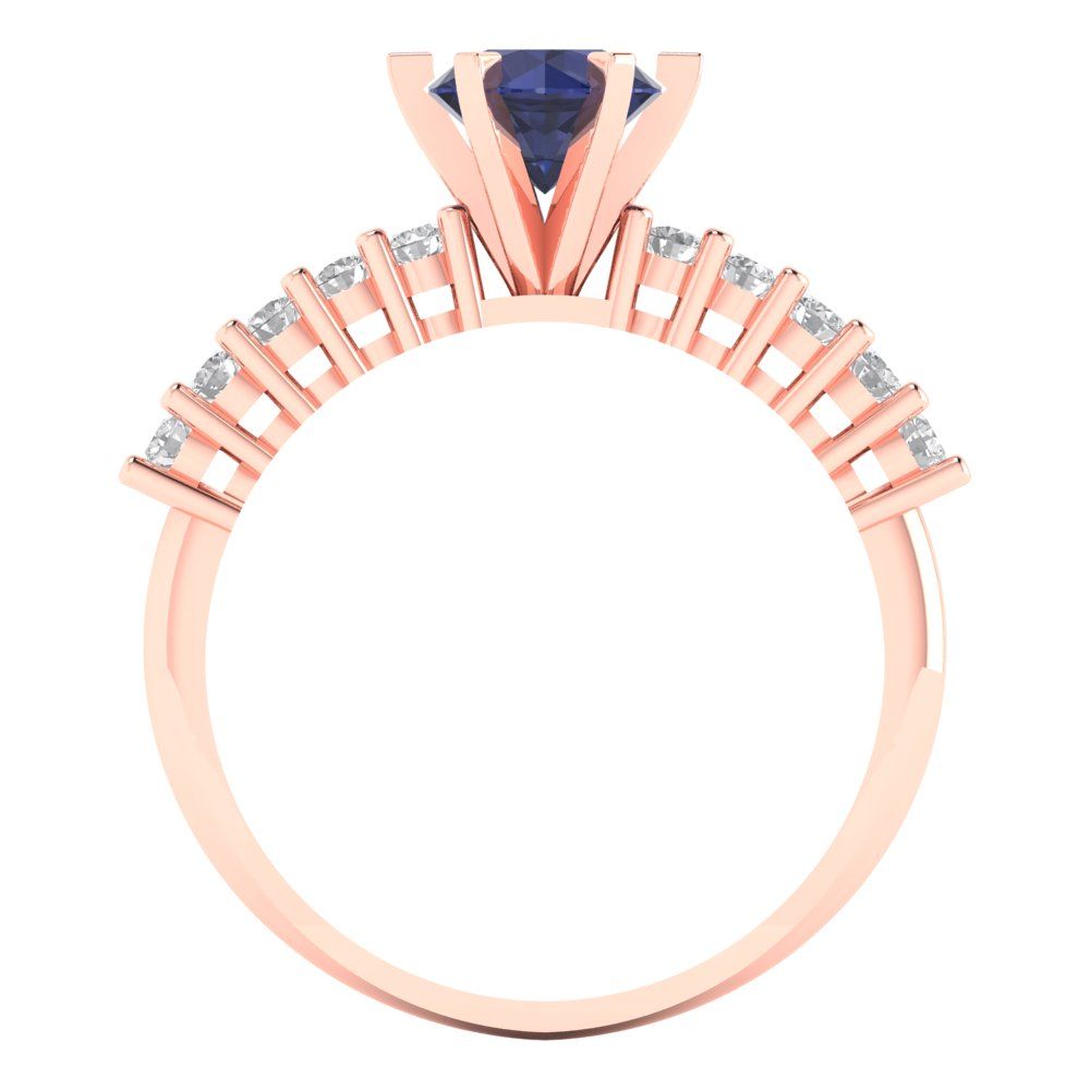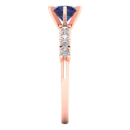 1.05 cttw Simulated Blue Sapphire Solitaire with Zirconia Simulated Diamond Accents Engagement Ring - Solid Gold (Round Cut,6.0mm)