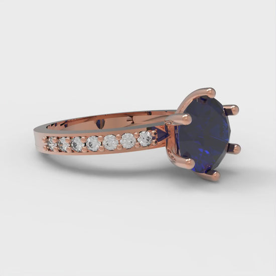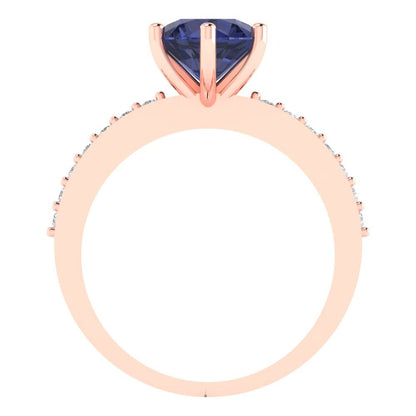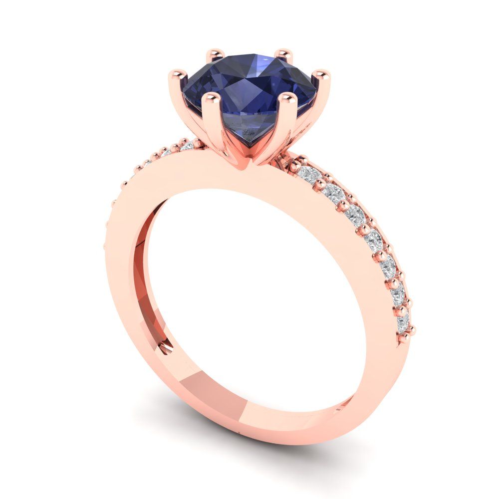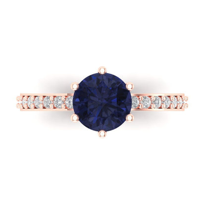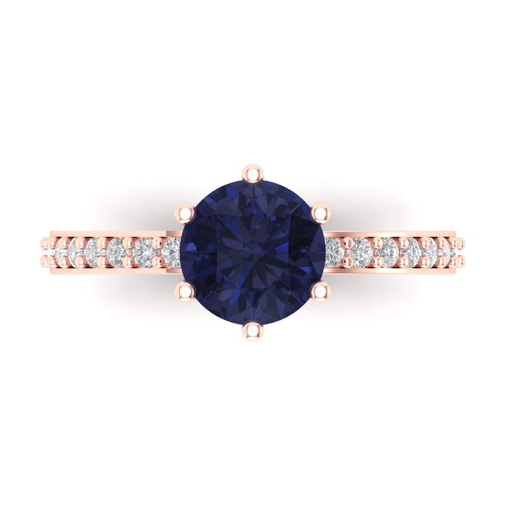 1.71 cttw Simulated Blue Sapphire Solitaire with Zirconia Simulated Diamond Accents Engagement Ring - Solid Gold (Round Cut,7.5mm)