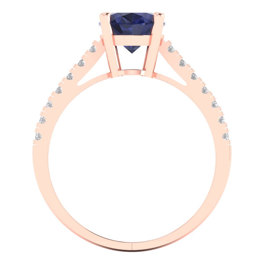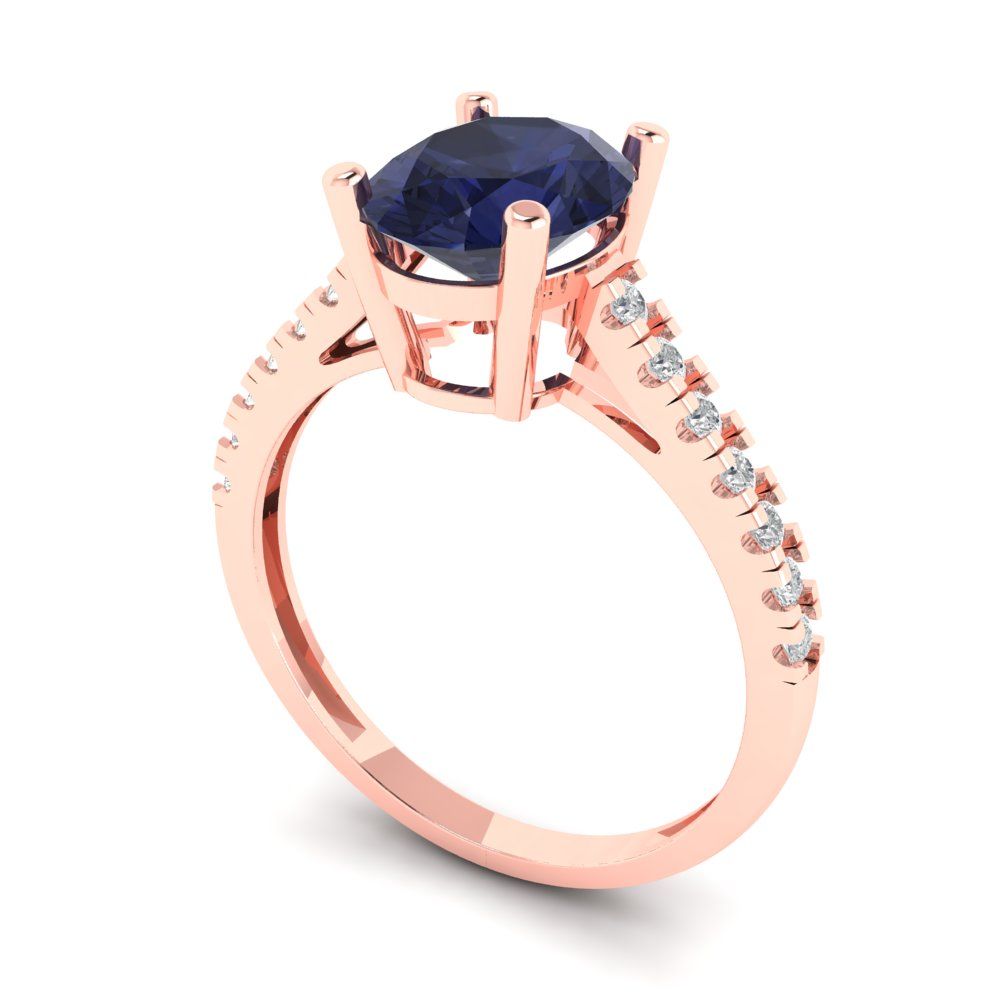 2.21 cttw Simulated Blue Sapphire Solitaire with Zirconia Simulated Diamond Accents Engagement Ring - Solid Gold (Oval Cut,9X7mm)