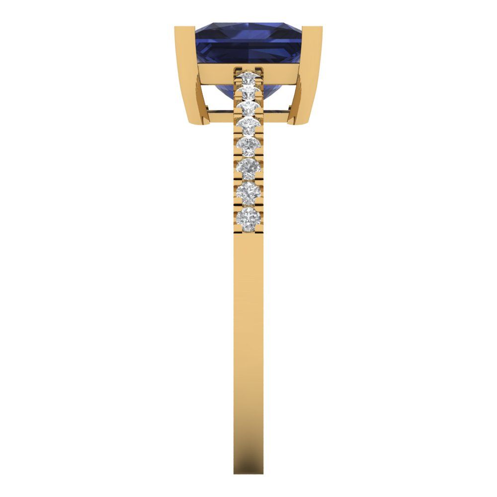 1.62 cttw Simulated Blue Sapphire Solitaire with Zirconia Simulated Diamond Accents Engagement Ring - Solid Gold (Princess Cut,6.5mm)
