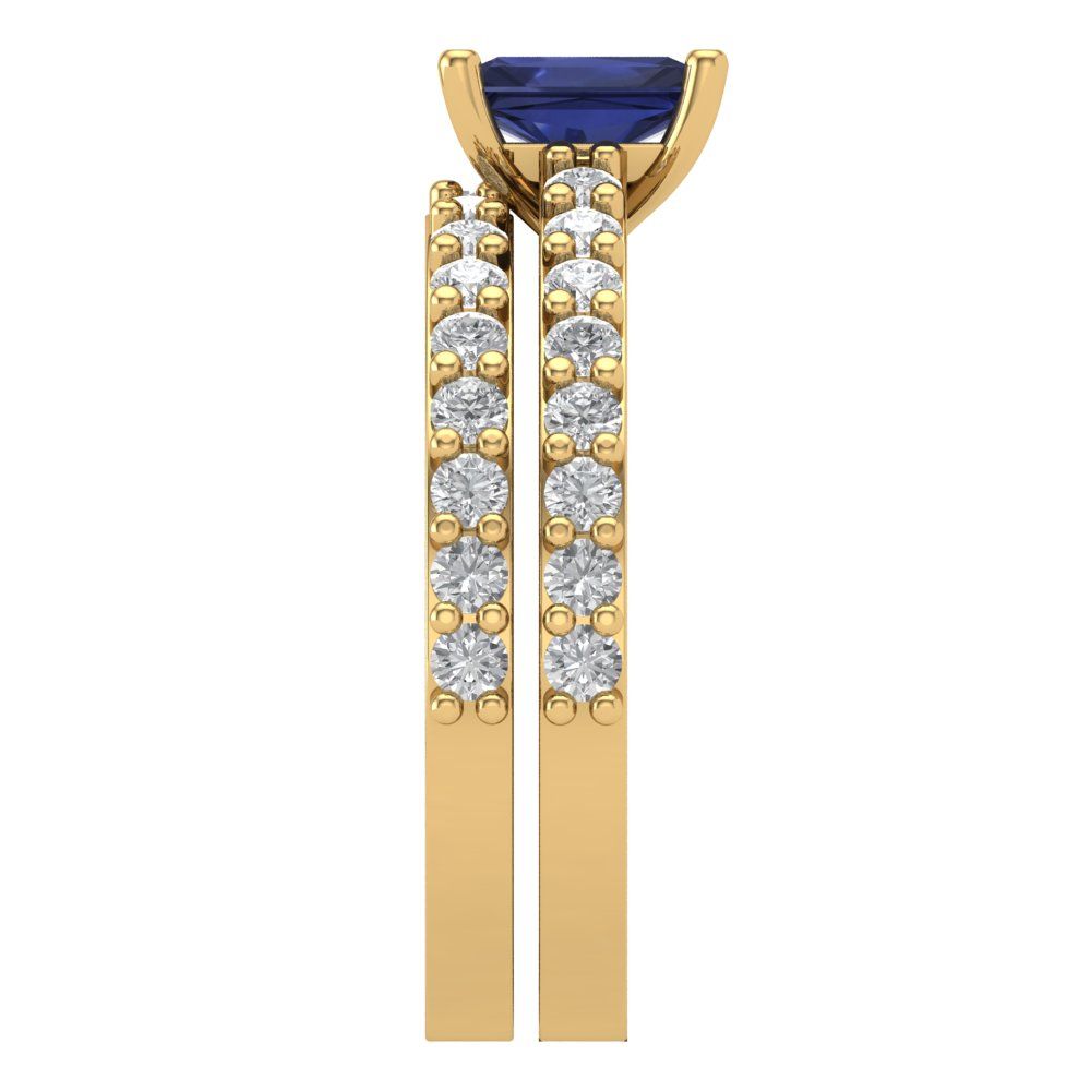 1.325 cttw Emerald Cut Simulated Blue Sapphire Bridal Set - Solid Yellow Gold Engagement Ring & Wedding Band