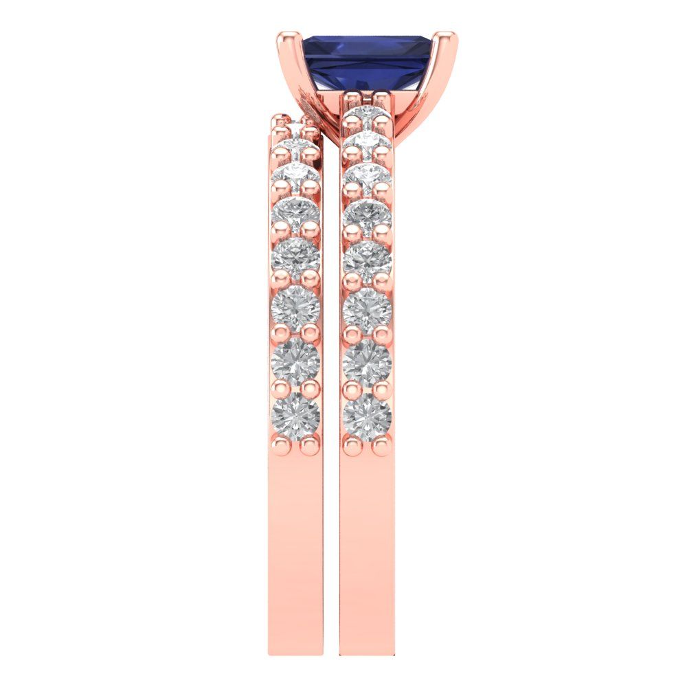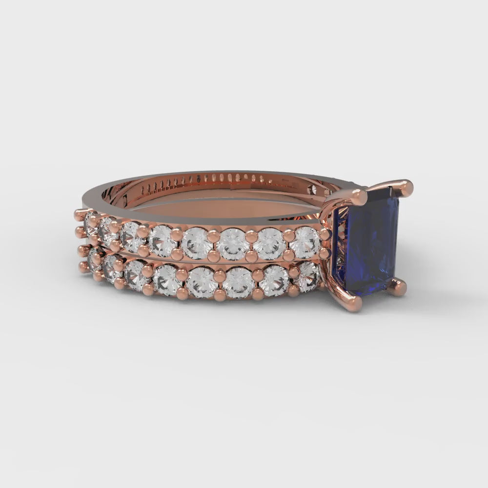 1.325 cttw Emerald Cut Simulated Blue Sapphire Bridal Set - Solid Rose Gold Engagement Ring & Wedding Band